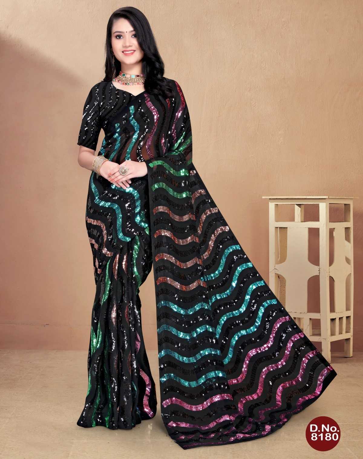 pr 8180 beautiful sequence work occasion wear sarees collection