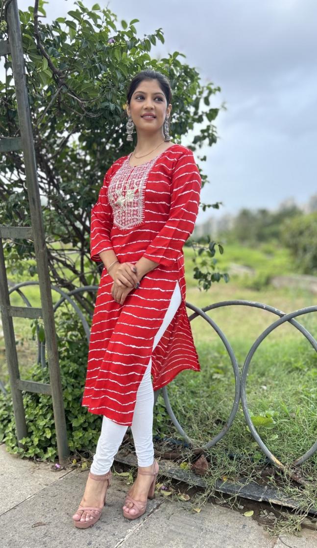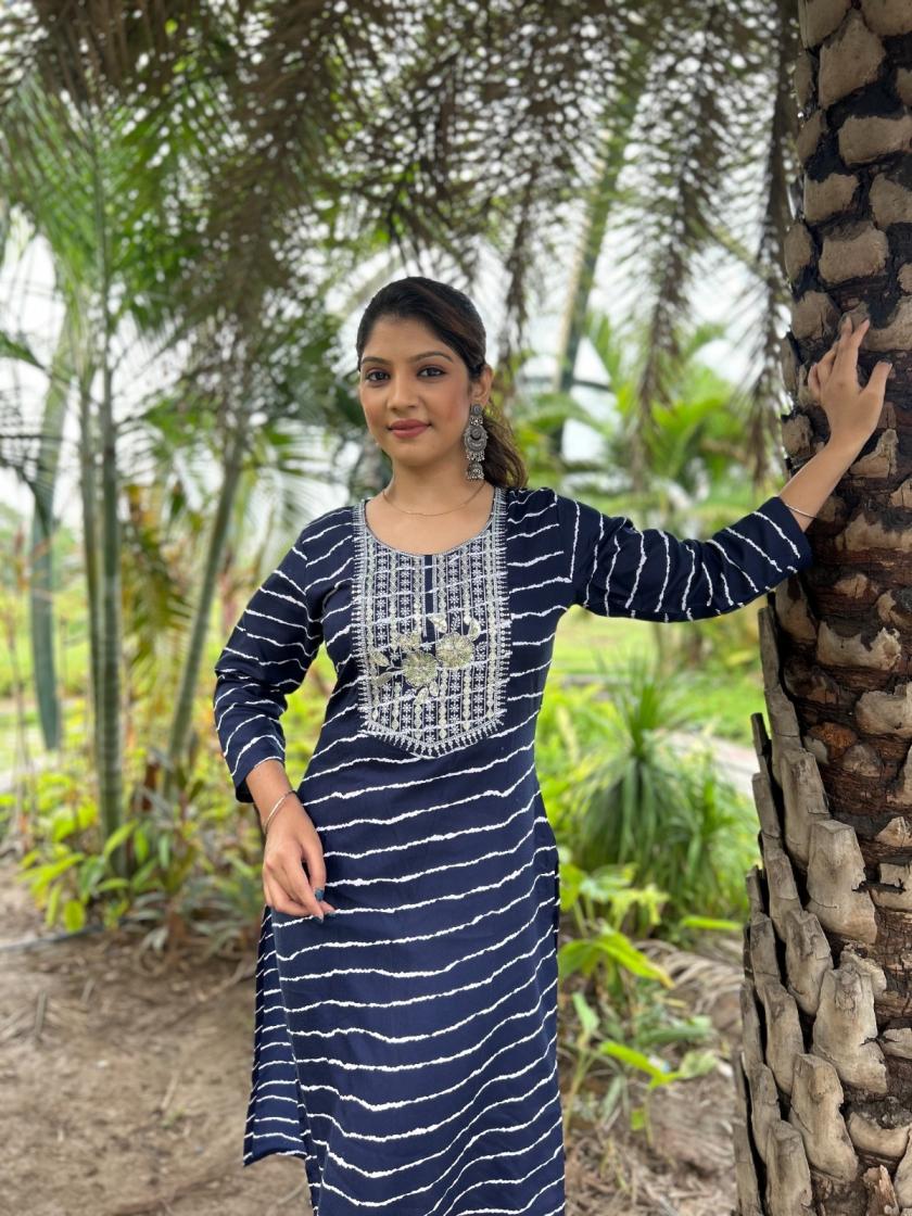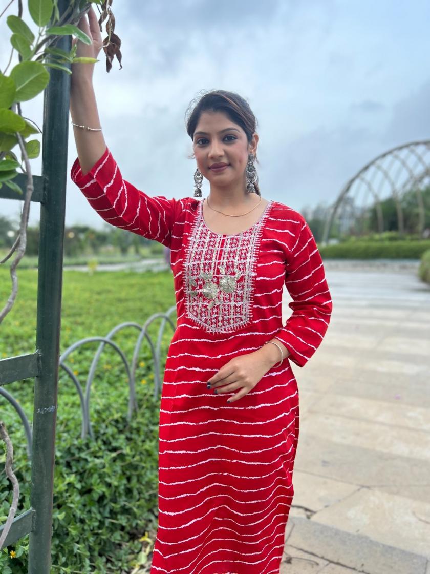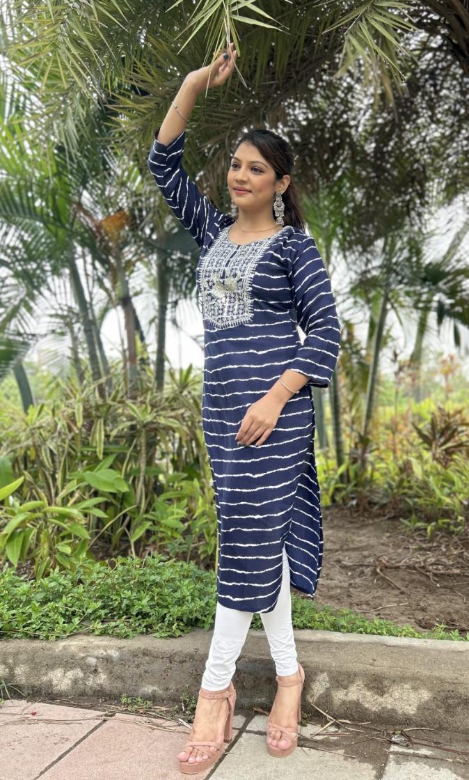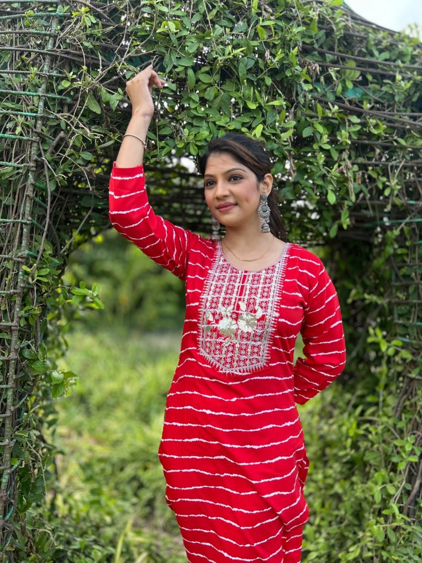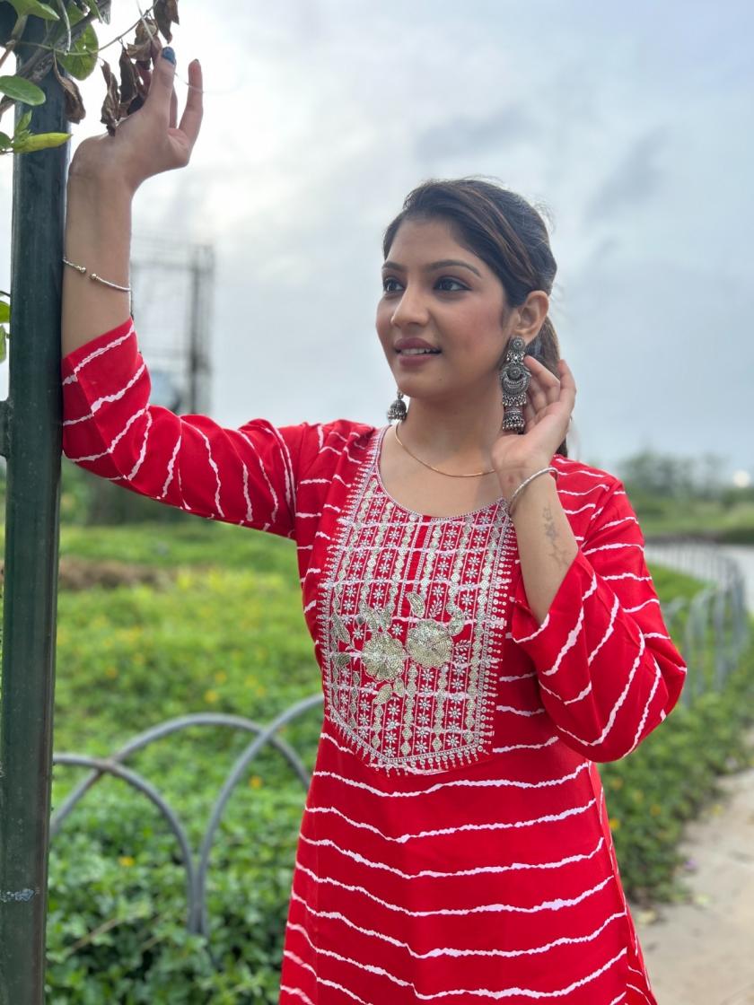 PR 9STAR FASHION LEHERIYA RAYON WITH EMBRODERY WORK FANCY DESIGNER KURTI