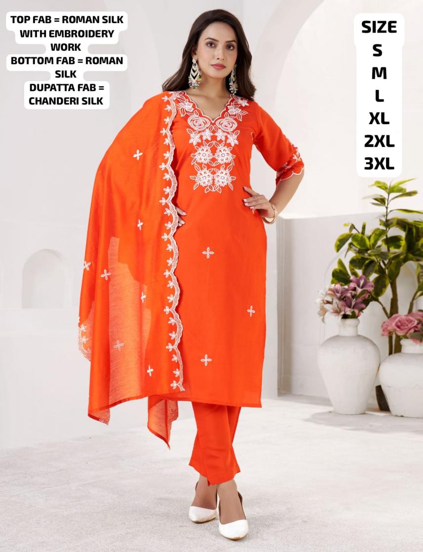 NEW READYMADE STANDARD QUALITY PRODUCT NAMO HIT VOL-1 FULLY STICHED KURTA & PANT DUPATTA SET FABRIC DETAILS : TOP FAB - ROMAN SILK WITH EMBRODEIRY WORK BOTTOM FAB - ROMAN SILK DUPATTA FAB - CHANDERI SILK WITH EMBRODEIRY WORK INNER - MICRO COTTON SIZE - S & M & L & XL & XXL & 3XL COLOUR - WINE AND ORANGE BOOK YOUR ORDERS NOW !!! STANDARD QUALITY PRODUCT FULL SET AVAILABLE FULL STOCK AVAILAVLE SAME DAY DISPATCH |