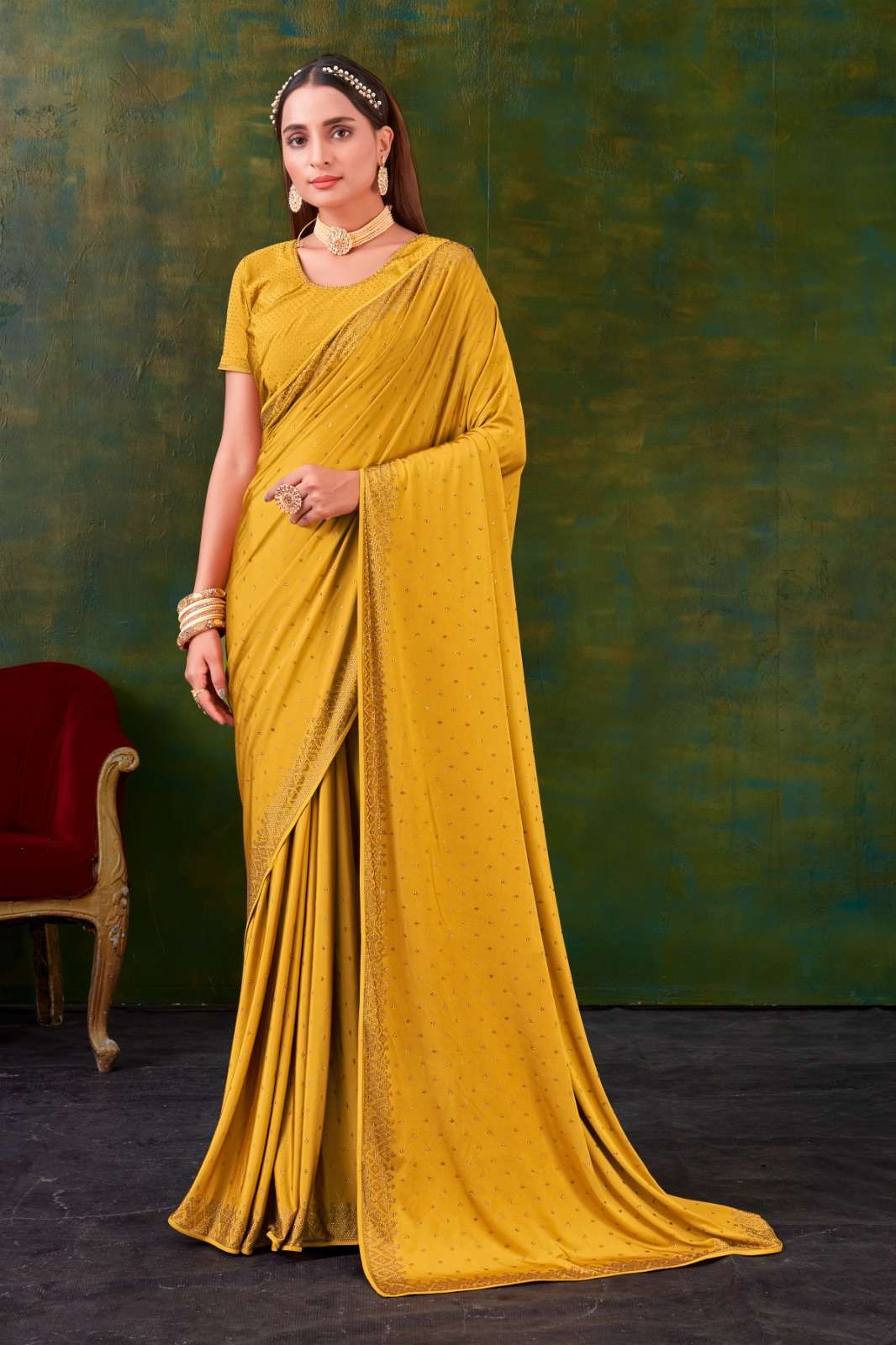 REGULAR SAREE DESIGN NO A203,A205,A206,A207, A209,A210 BLOUSE SWAROVSKI WORK (UNSTITCHED BLOUSE) SAREE IMPORTED FABRIC WITH SWAROVSKI WORK 6 COLOURS AVAILABLE RATE 2495+5% GST |