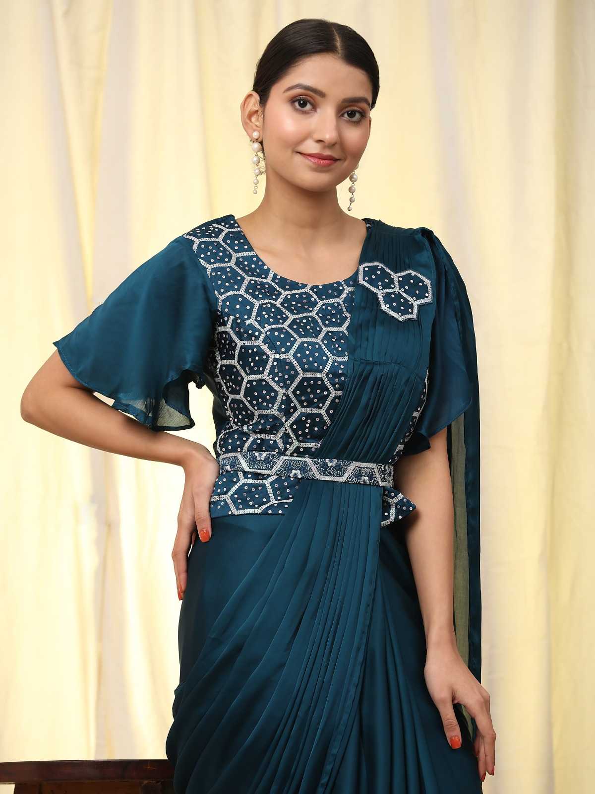 READY TO WEAR SAREES DESIGN NO A316 BLOUSE SEQUIN EMBROIDERY WORK WITH DESIGNER PATTERN SAREE PURE SATIN FABRICS SIZE (36 READY) 4 COLOURS AVAIABLE