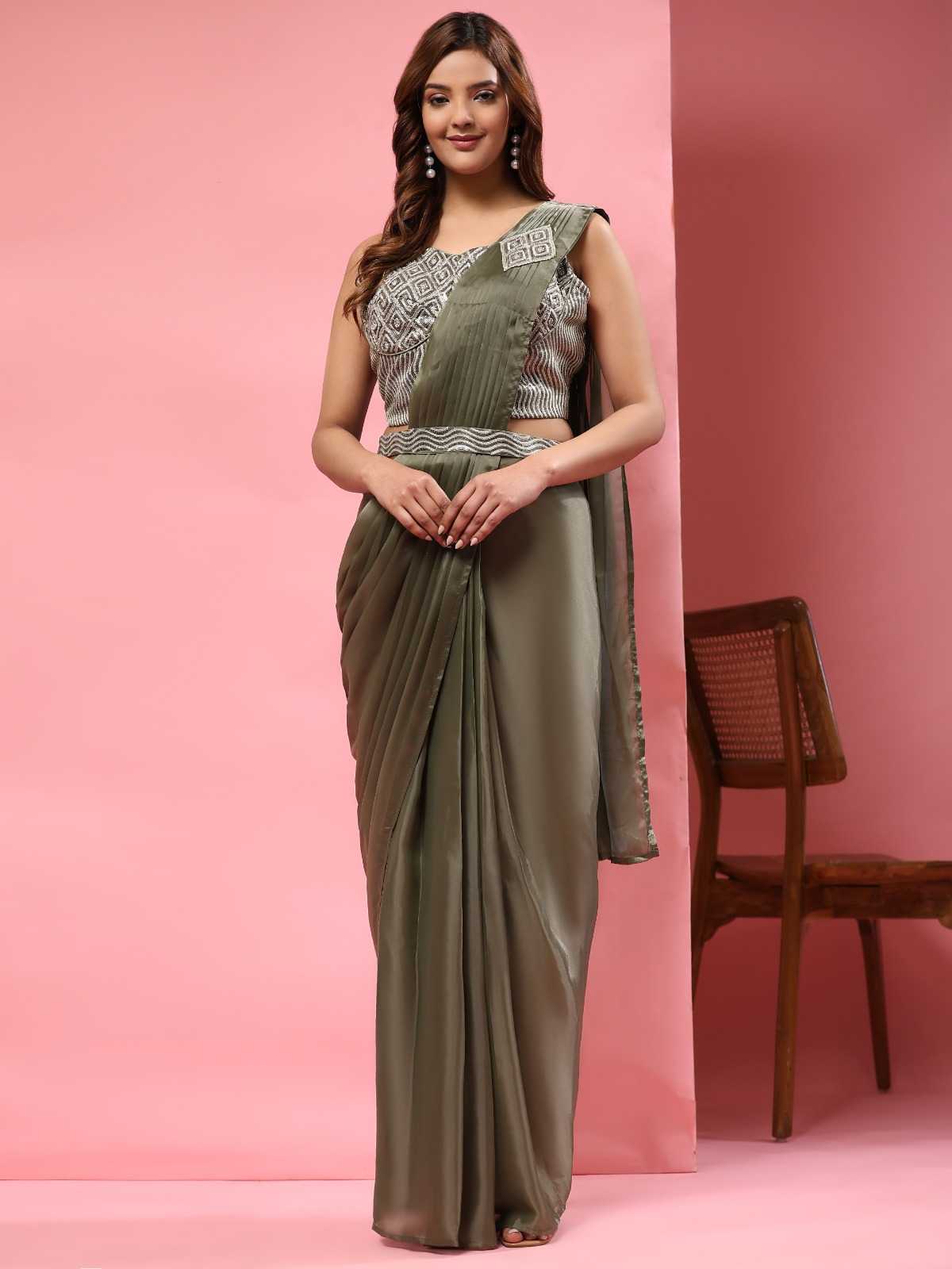 READYMADE SAREES DESIGN NO A329 BLOUSE SEQUIN EMBROIDERY WORK SAREE IMPORTED SATIN FABRIC AND BELT SIZE 36(READY) 4 COLOURS AVAILABLE RATE 2845 +5%(GST) |