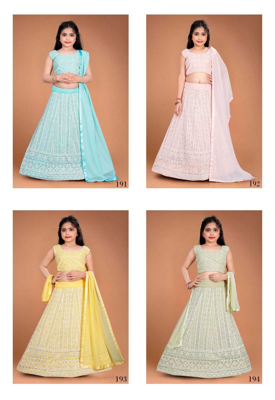 pr aaradhna vol 21 fully stitch georgette lucknowi chikan work kids wear lehenga collection
