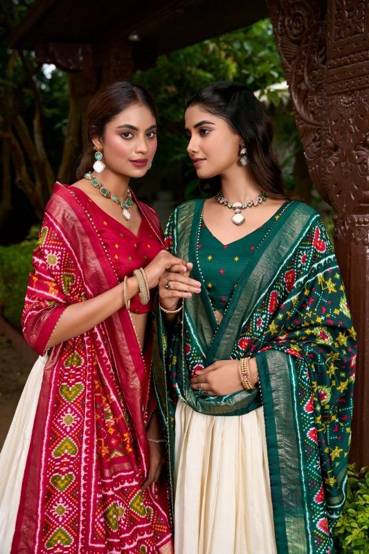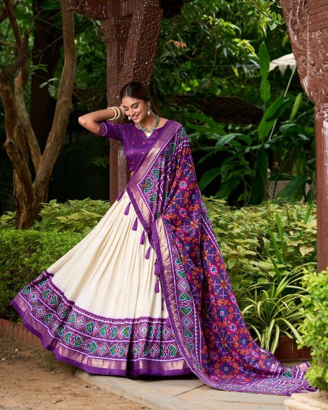 🌷Lehenga Choli🌷 Wedding Grace in Patola Print ✨ Catalogue : AAROHI LNB1230RBL Lehenga(Stitched) Blouse (Unstitched) Dupatta Package Contain : Lehenga, Blouse, Dupatta, Drawstring with Zip, Tassels Weight : 1.270 KG Rate : 1400/- |
