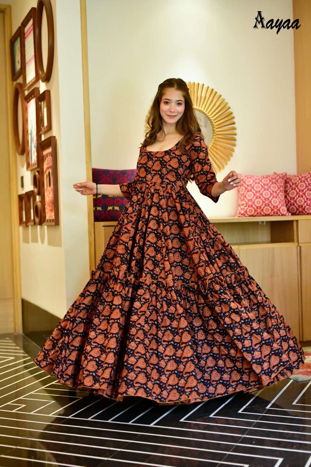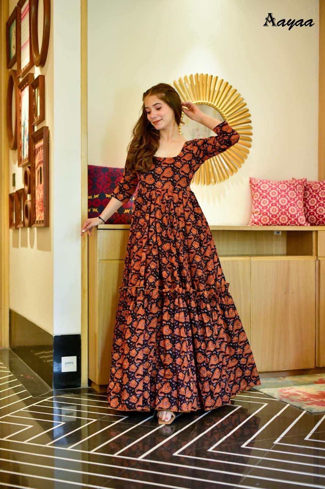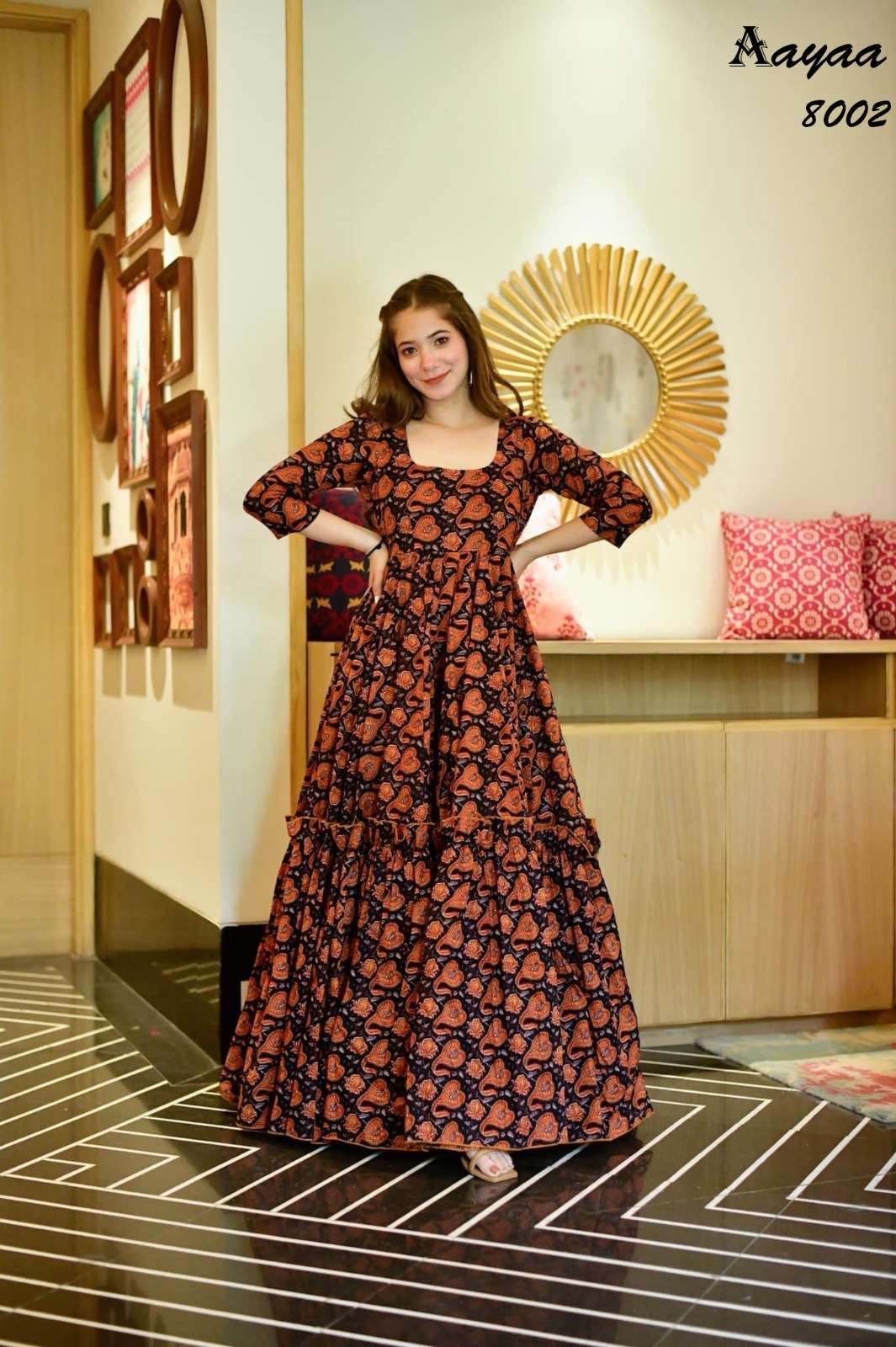 Catalog Name – Aayaa vol 8 Fabric:- Work – Heavy Digital Printed Size:- M(38),L(40),XL(42),XXl(44) Length – Design no 8001 to 8003 - Up to 56 inch Stitched type: Full stitched Weight – 800gm Rate – Design no 8001 – 899/- Disclaimer: Colour Of The Garment May Differ From The Picture By 10-12% |