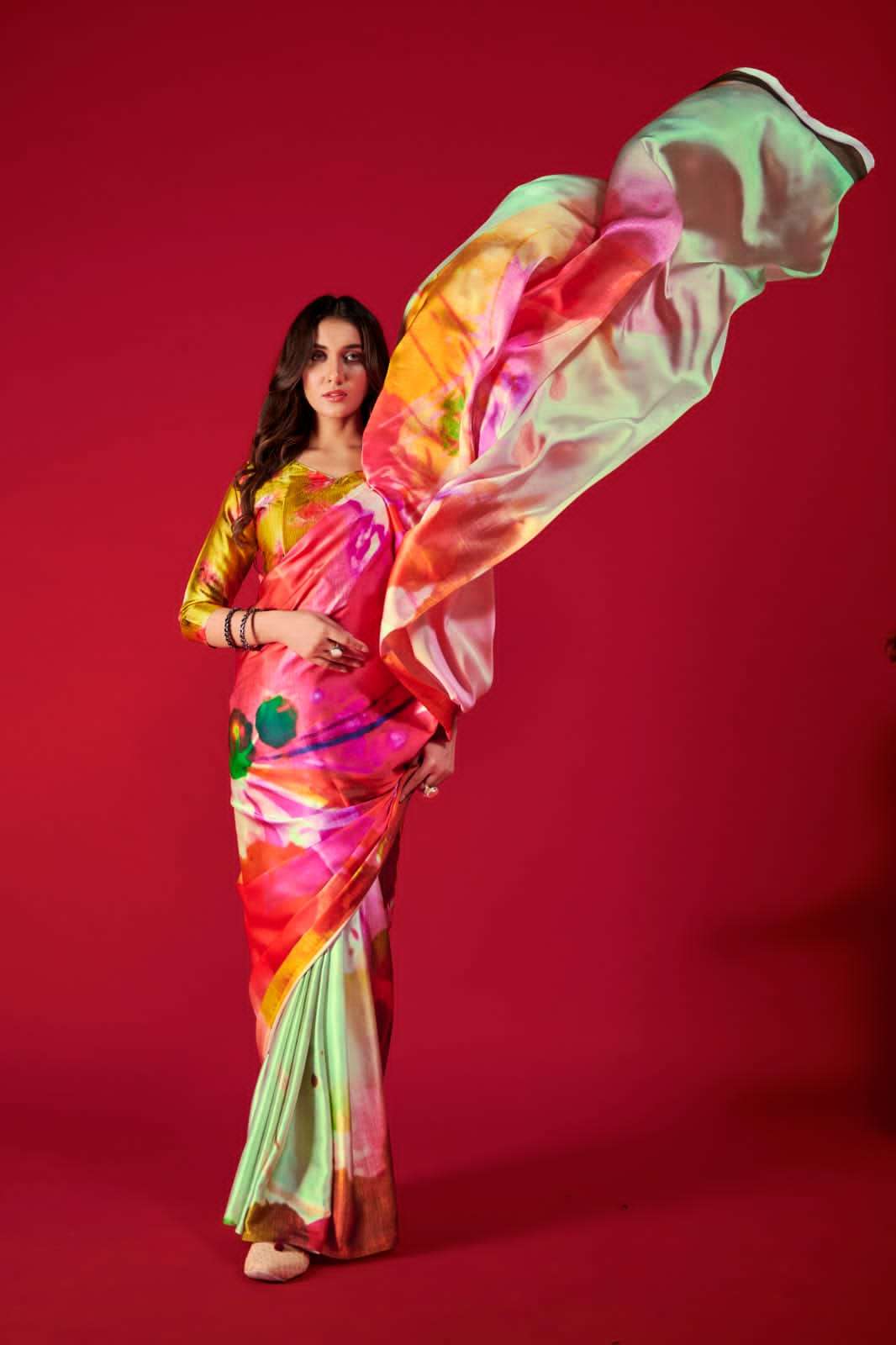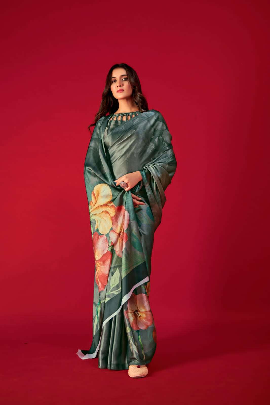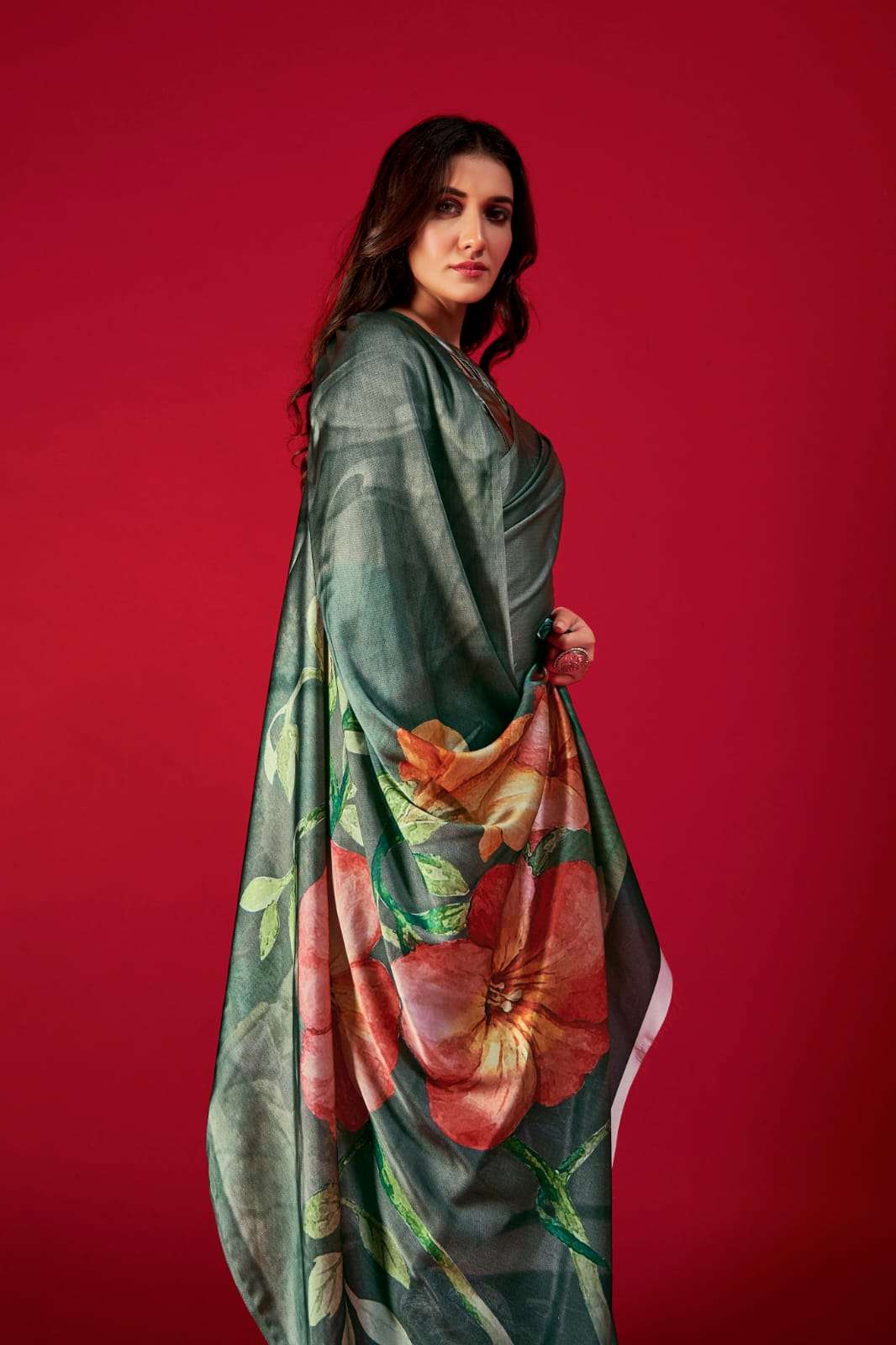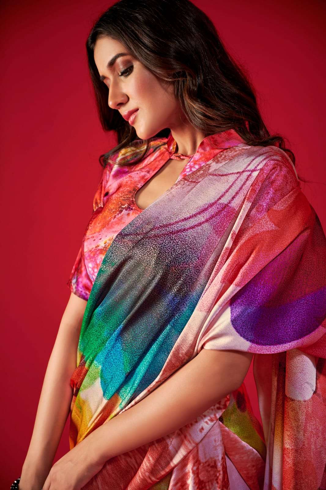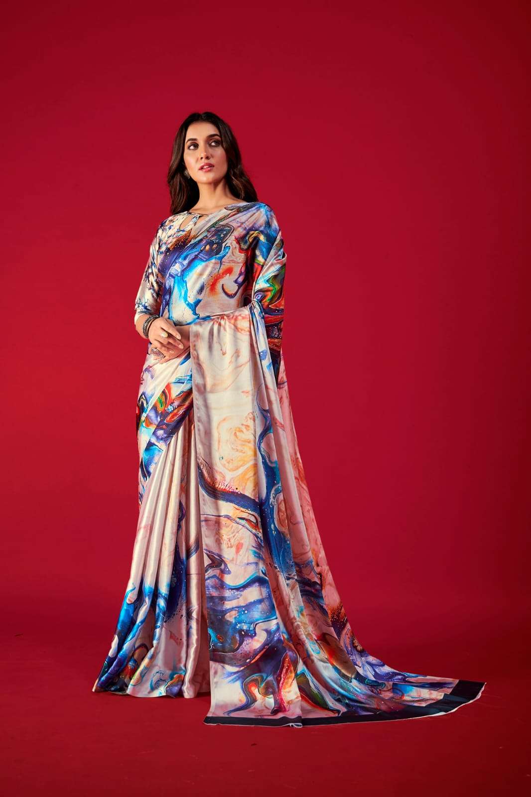 pr alexa Pure Sattin crepe with designer Digital print saree