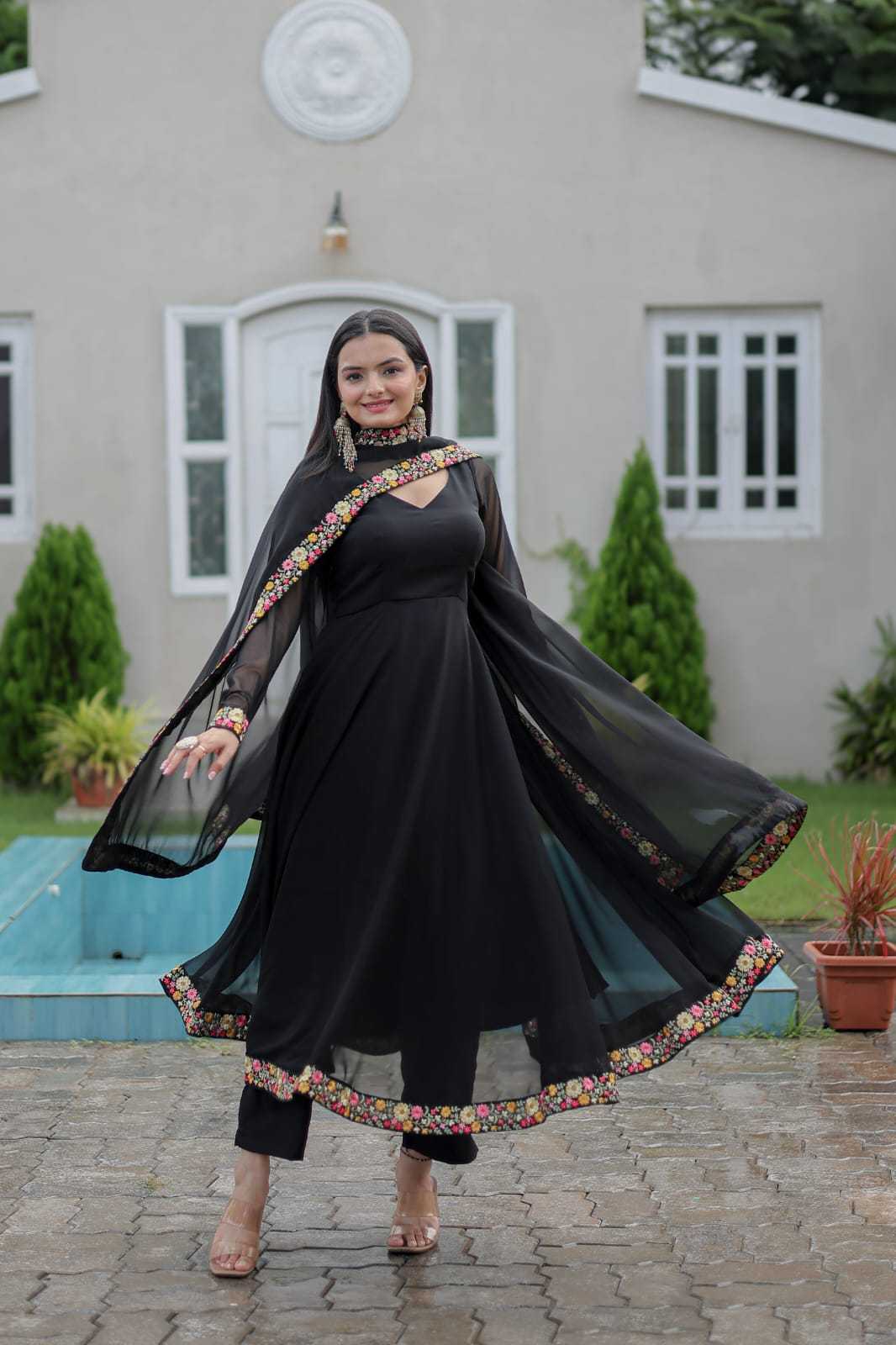 ANISHKA Fabric : Pure Georgette with Heavy Embroidery lace with Full inner Pent : Micro Cotton Dupatta Package Contain : Gown, Dupatta, plazo SIZE : M, L, XL, XXL Rate : 1199/- per pcs Weight: 900gm |