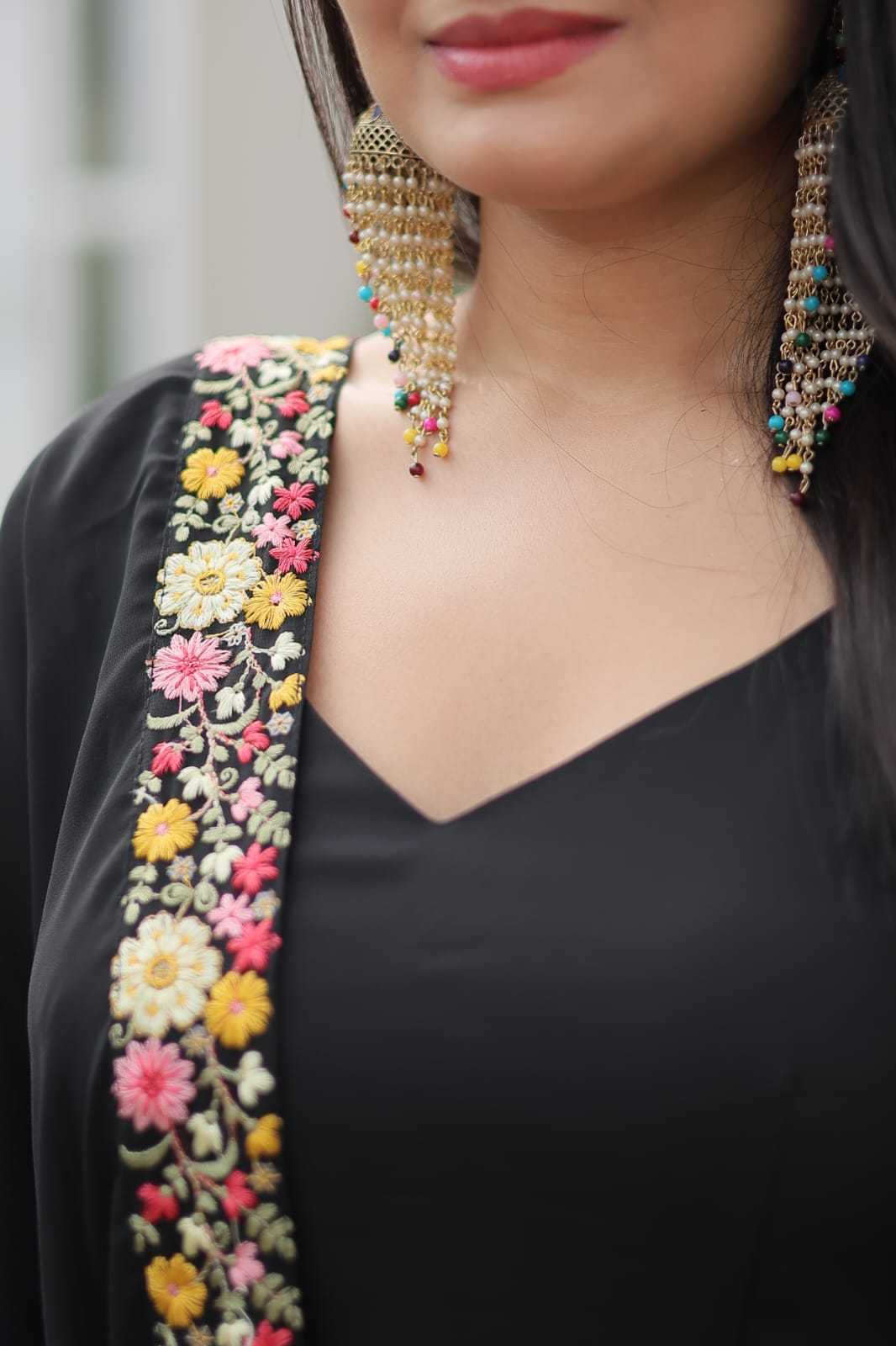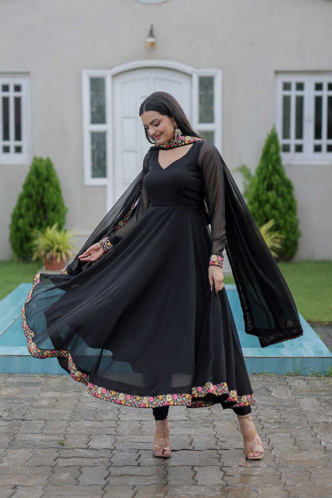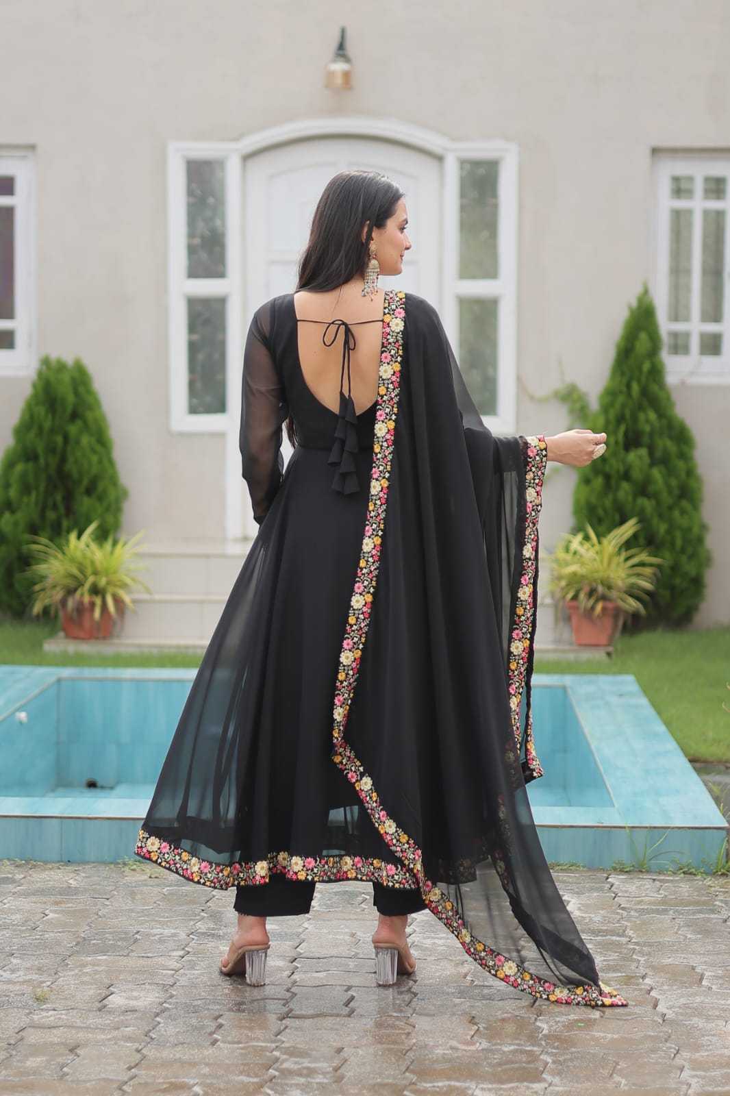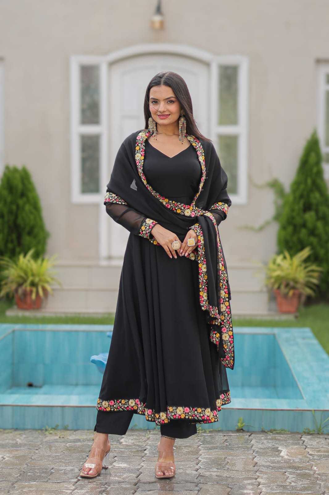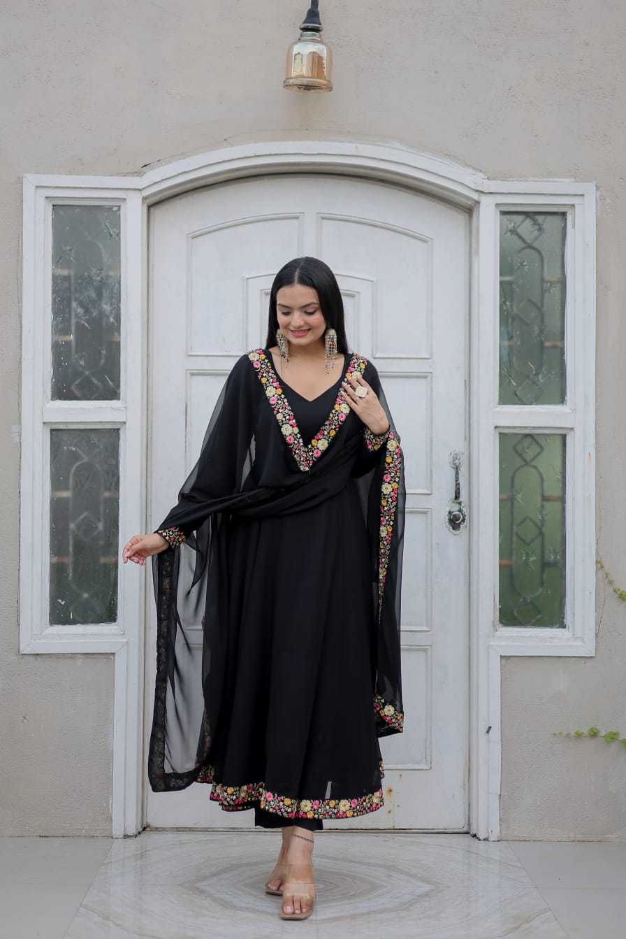 pr anishka embroidery georgette readymade combo gown with dupatta