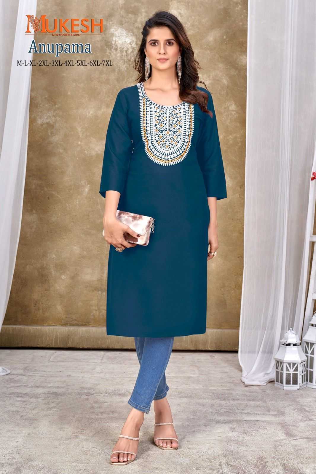 💐 ANUPAMA💐 FABRIC :- 14kg RAYON Work:- EMBROIDERY WITH MIRROR Size :- M, L, XL, XXL, 3XL, 4XL, 5XL Design :- 6 Rate : 275/- |