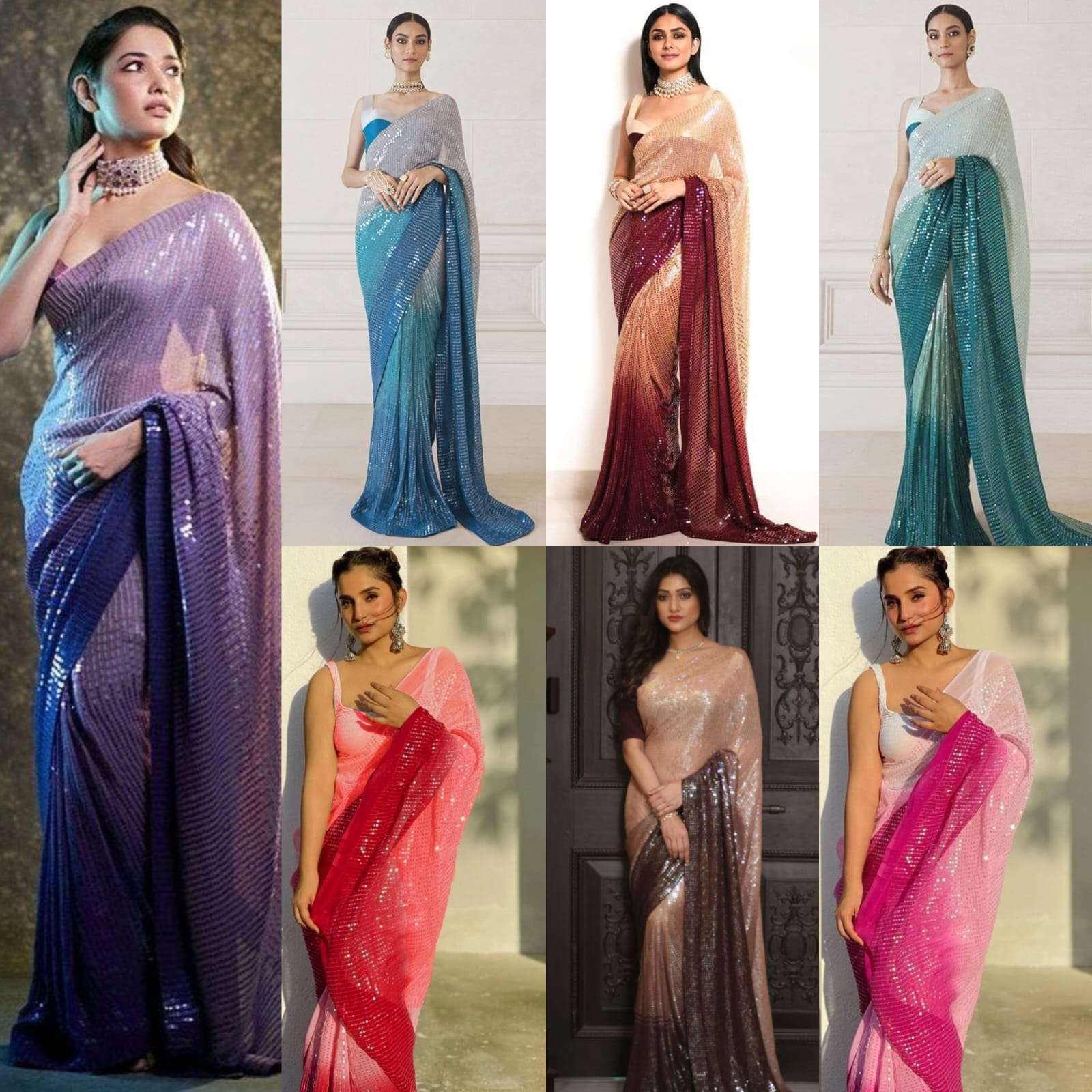 New BlockBuster Design Launching 3D EFFECT 5MM SEQUENCE SAREE CODE-BAHURANI Fabric Details Full Saree Of 60 Gram Georgette 3D EFFECT With Heavy 5MM RAINBOW Sequence Embrodery Work Embrodery Details Blouse-SILK Beautiful Piping Done On Border WEIGHT-900 GRAM Premium Quality |