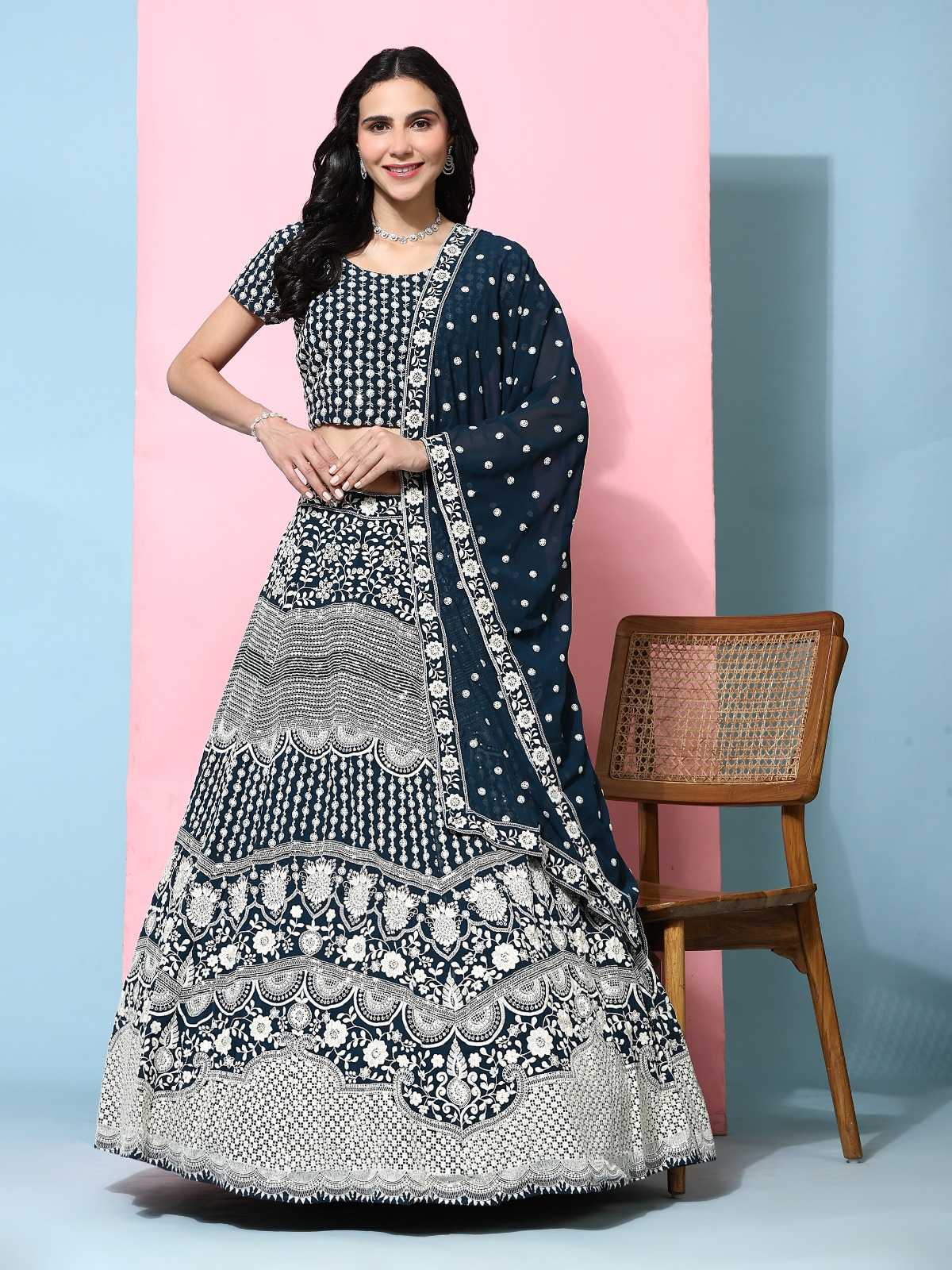 READYMADE LEHENGA DESIGN NO C1958 BLOUSE IMPORTED GEORGETTE FABRIC EXCLUSIVE EMBROIDERY WORK BLOUSE SKIRT HEAVY THREAD EMBROIDERED WITH PURE GEORGETTE FABRIC SIZE 38(READY) 3 COLOURS AVAILABLE RATE 4275+12%(GST) |