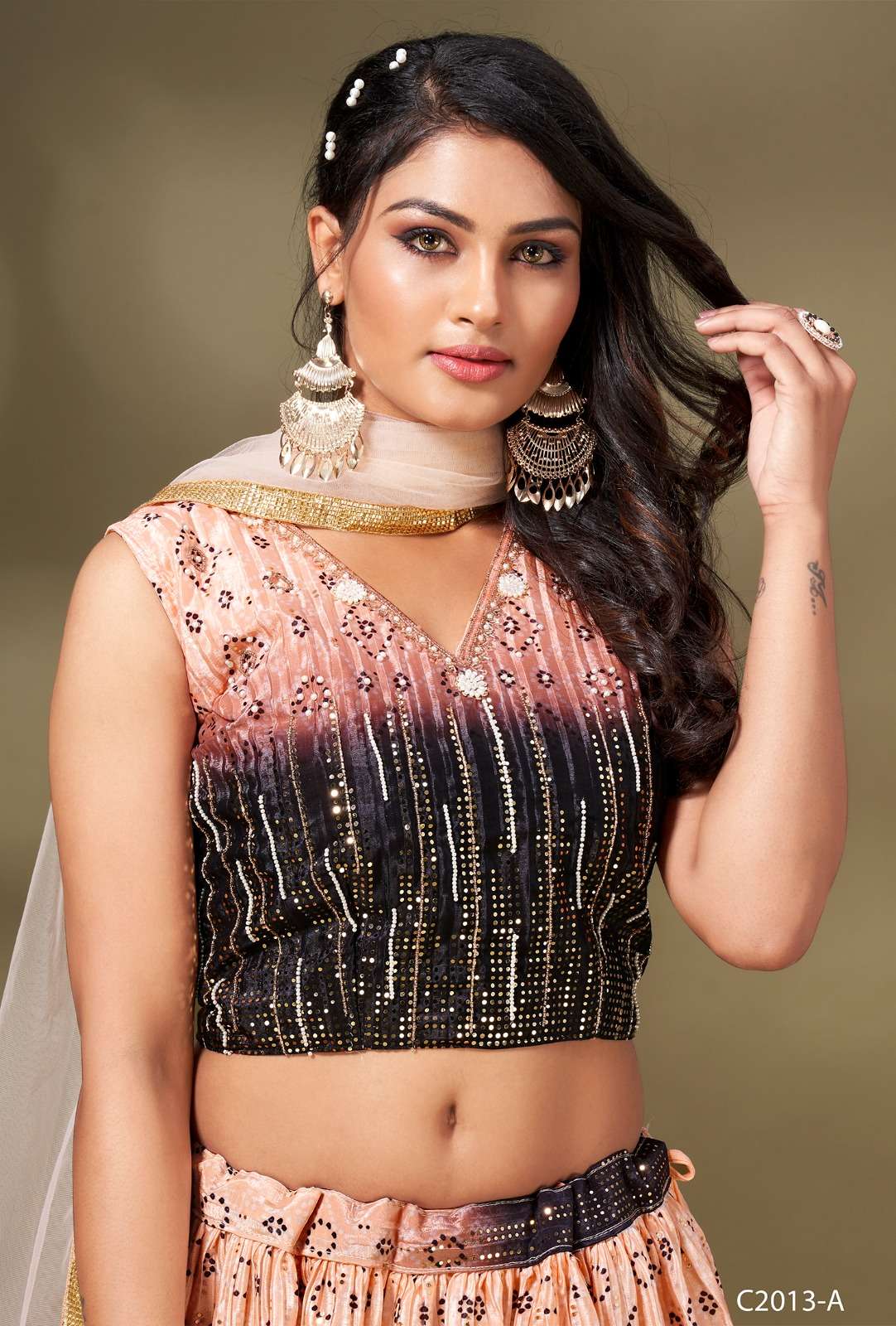 READYMADE CROP TOP TOP EXQUISITE SPRANGLE WITH BEADS WORK LEHENGA CHINNON CRUSH WITH SPRANGLE DUPPATTA NET WITH FANCY BORDER SIZE (40 READY) 1 COLOURS AVAILABLE RATE 2395+12% (GST) |