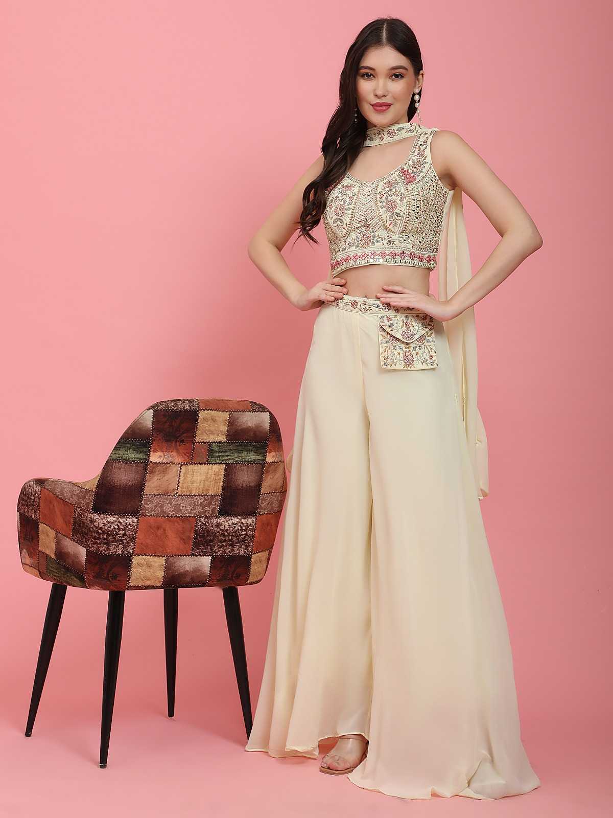 pr c 324 readymade designer georgette embroidery work kurti plazo dupatta