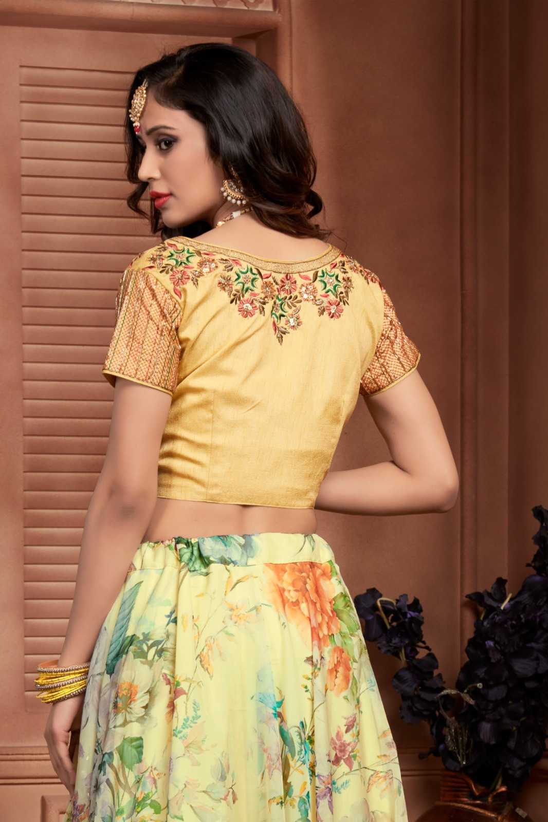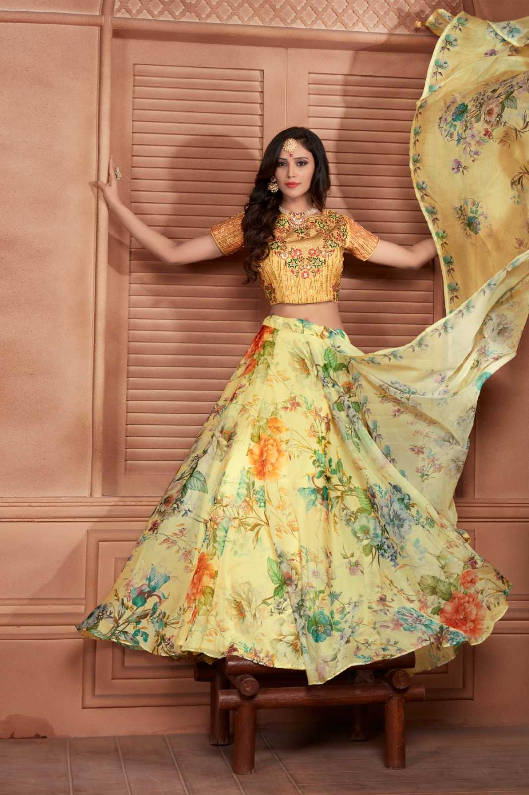 pr c1980 readymade yellow wedding wear silk organza handwork single lehenga crop top dupatta