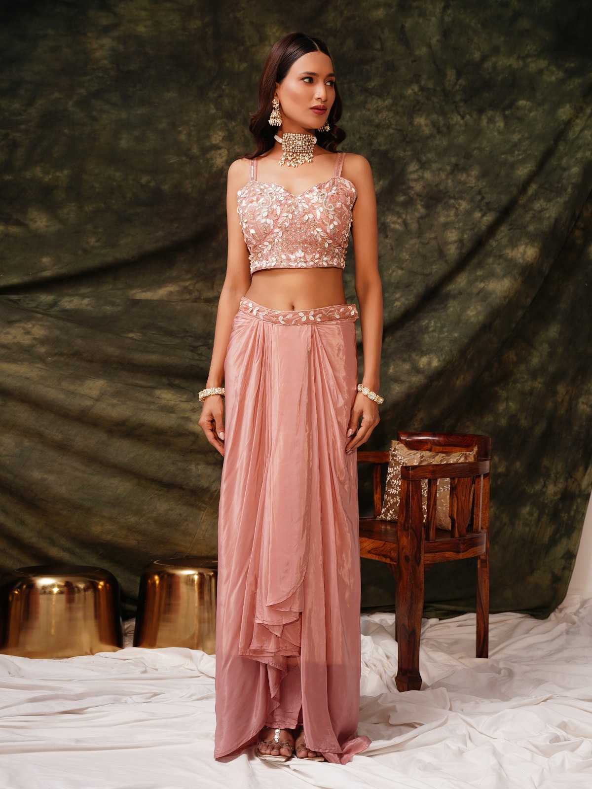 READYMADE CROP TOP DESIGN NO C2080 BLOUSE PURE CREPE FABRIC WITH HAND EMBROIDERED WORK BLOUSE PLAZZO EMBROIDERY WORK WITH PURE CREPE FABRIC SHRUG HEAVY HAND WORK WITH PURE CREPE SIZE 38(READY) 2 COLOURS AVAILABLE RATE 3325+12%(GST) |