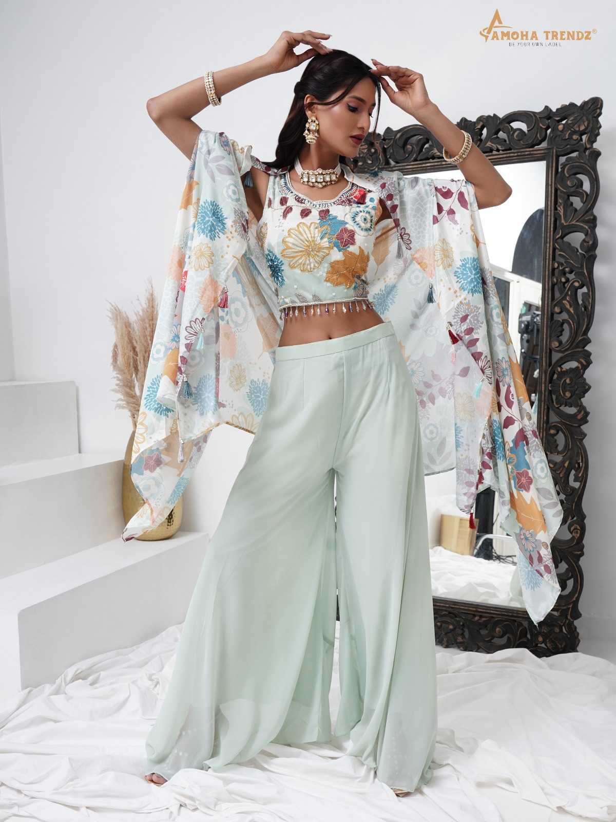 READYMADE CROP TOP DESIGN NO C288 TOP HEAVY HAND WORK WITH DIGITAL CHINNON PLAZZO PURE GEORGETTE FABRIC SHRUG HEAVY HAND WORK WITH DIGITAL CHINNON FULLY STICHED SIZE L,XL RATE 1995+12%(GST) |