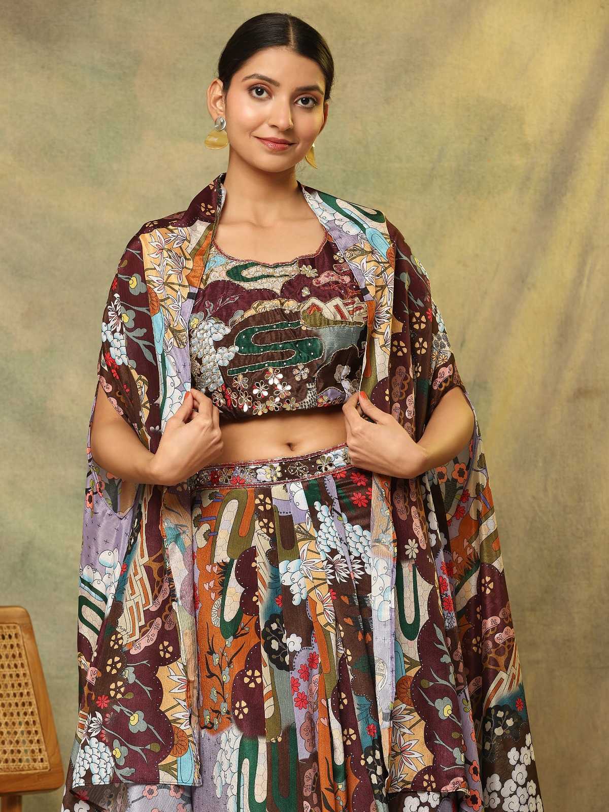 pr c362 readymade indo western stylish blouse skirt with shrug