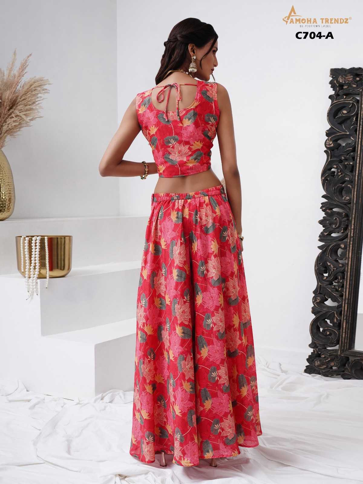 pr c704 embroidery work crape readymade crop top with plazzo & shrug