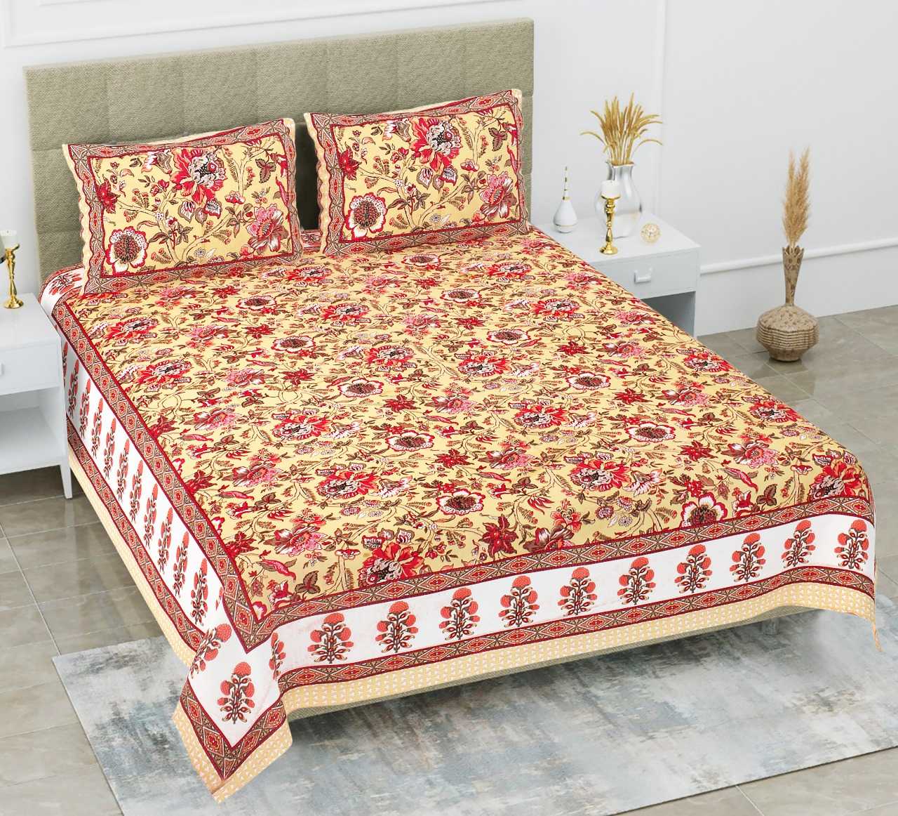 pr carnival beautiful cotton single bedsheet with two pillow covers