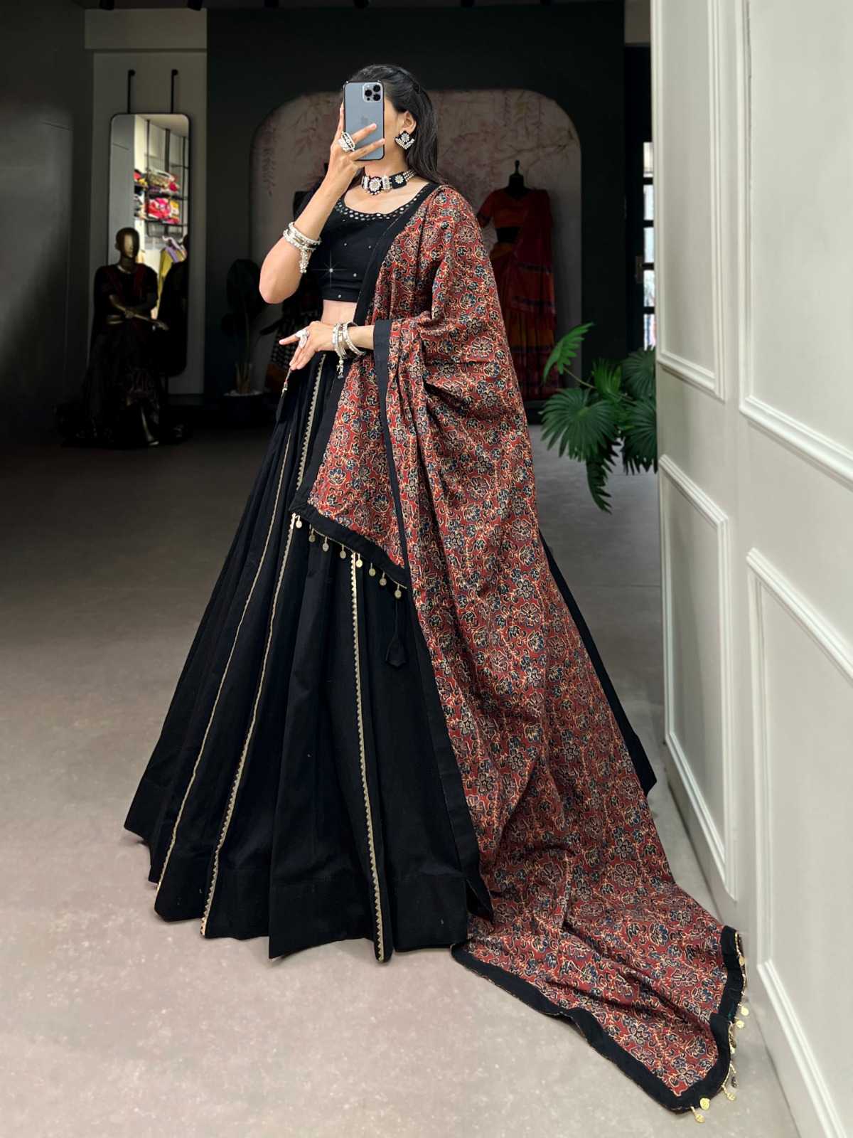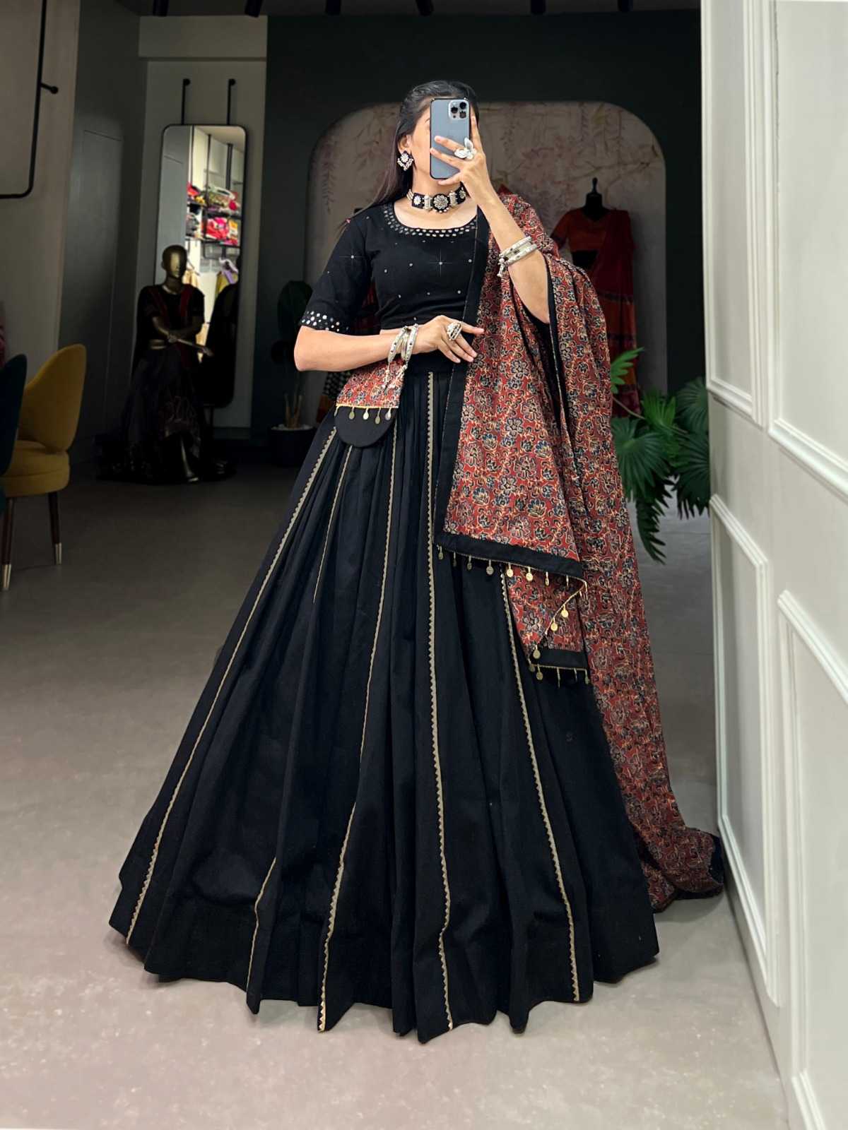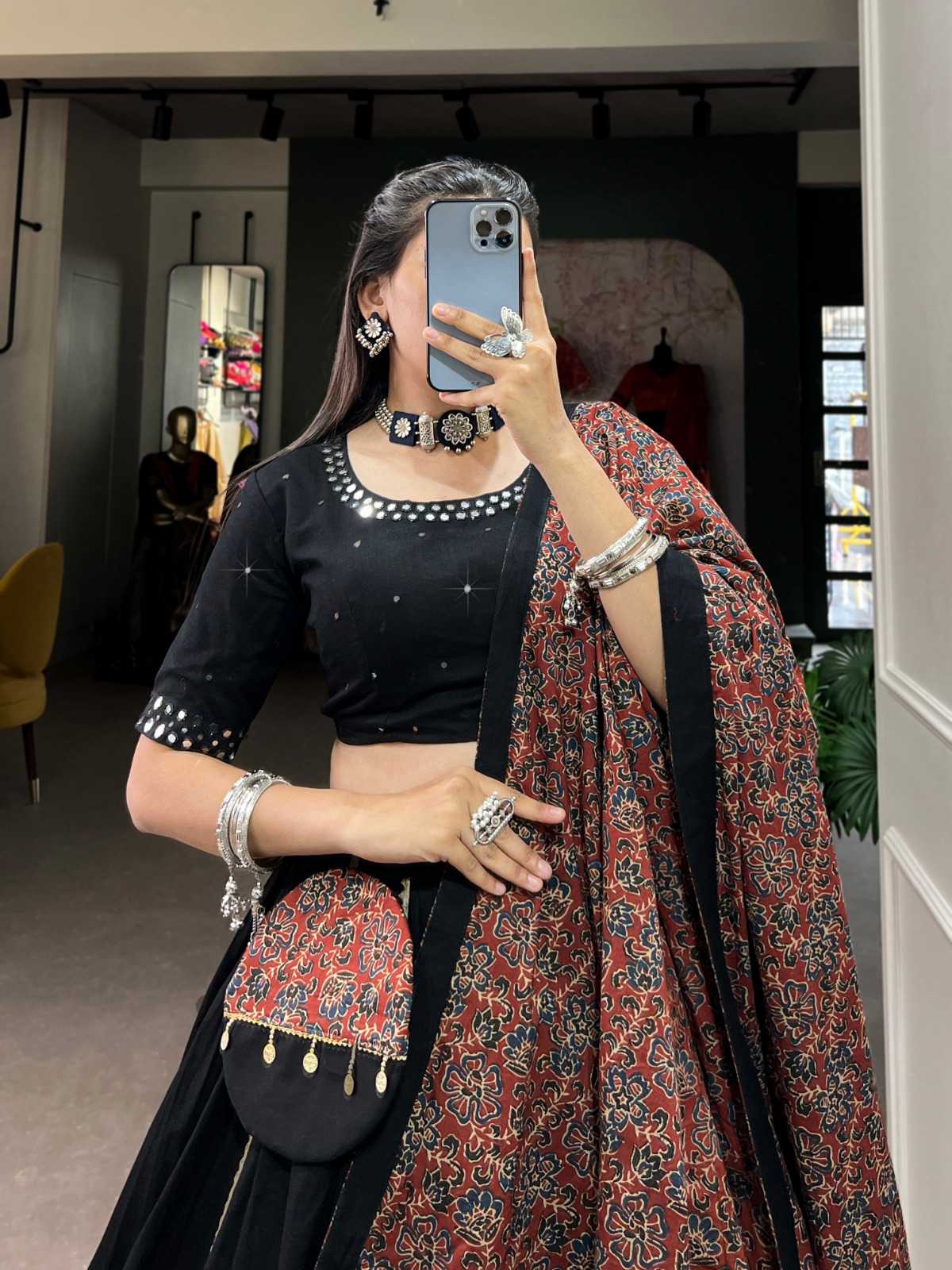 Navratri Collection 2024🌷 Dance through Navratri nights in this beautifully printed pure cotton lehenga choli. Complete with a matching purse and intricate coin lace detailing, it's perfect for the celebrations! 🥰 Catalogue : CHAITHRA LNB1697BLK Lehenga (Stitched) Blouse (Unstitched) Dupatta Purse : Plain And Printed With Coin (Ginni) Lace Touch Up Package Contain : Lehenga, Blouse, Dupatta, Purse, Drawstring with Zip Weight : 1.550 kg Rate : 2250 |