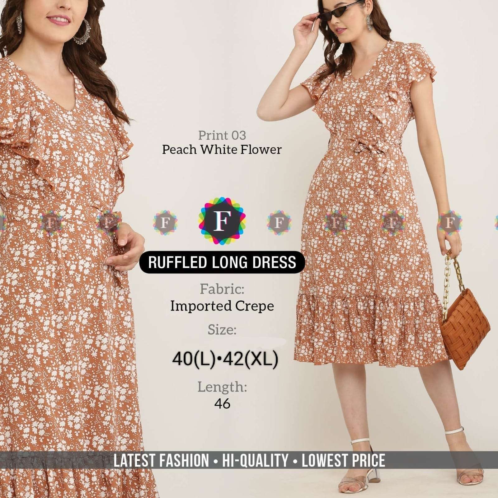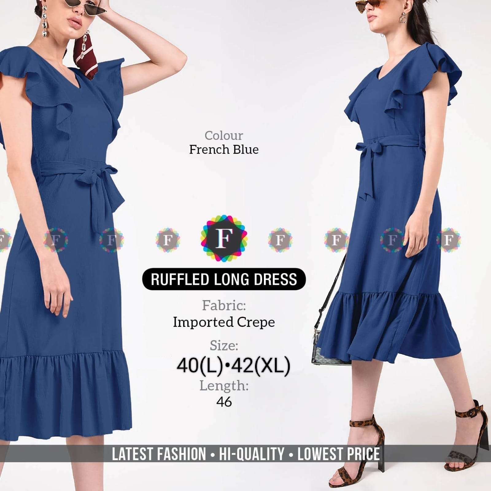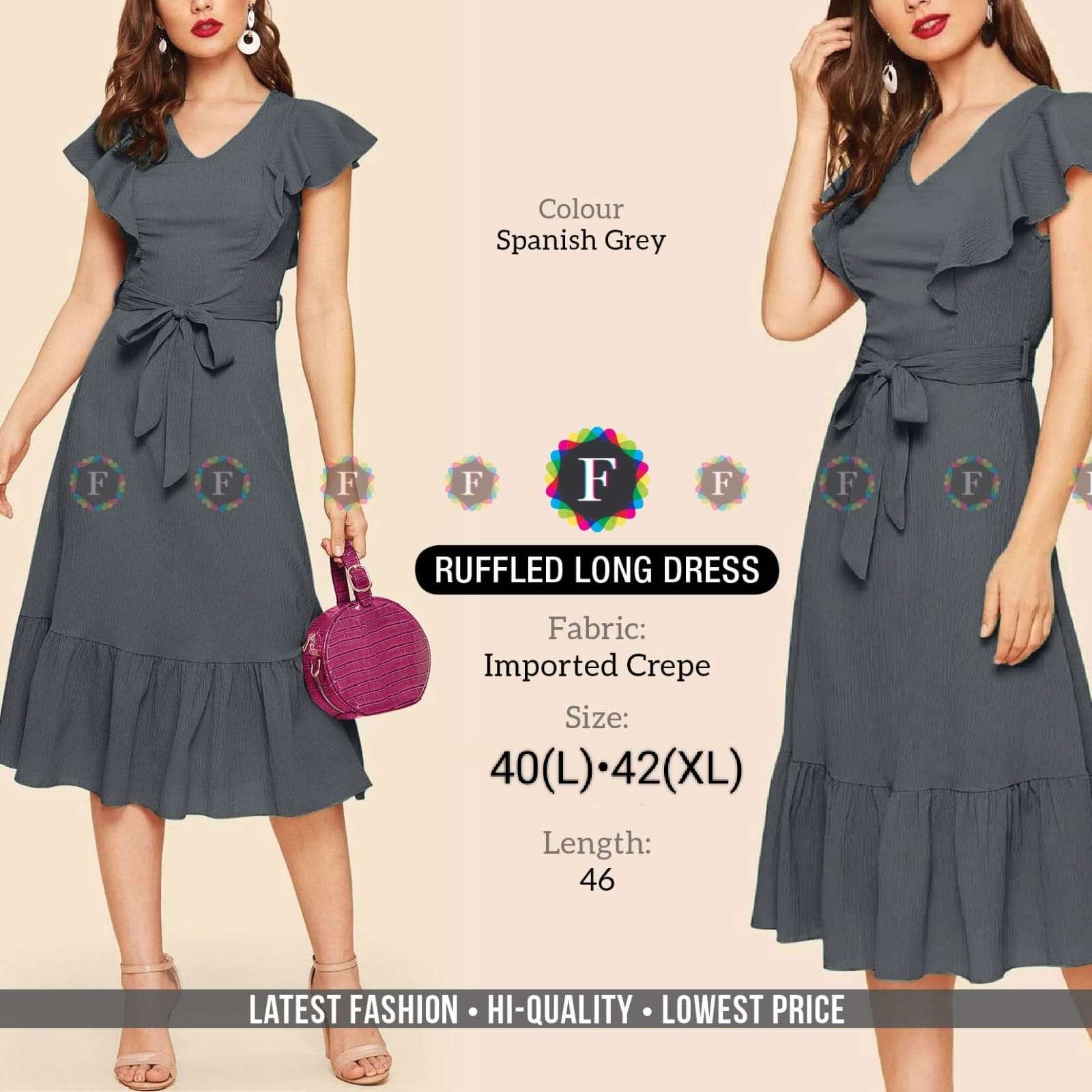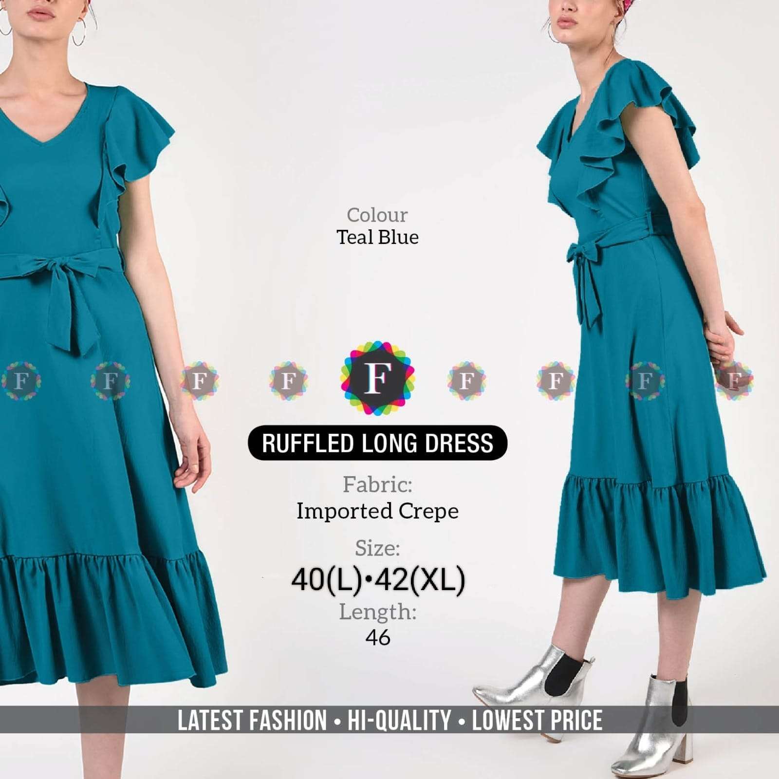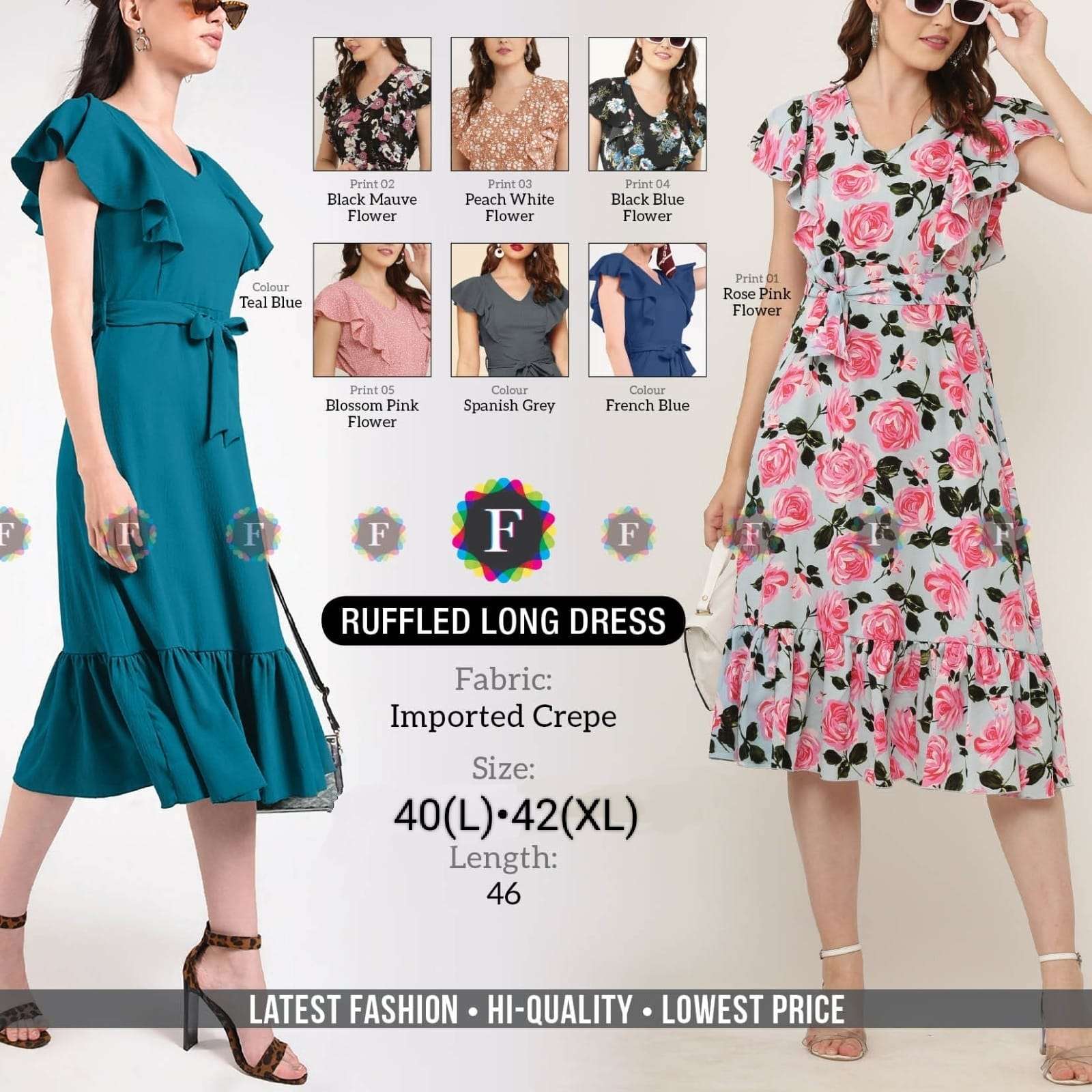BOOK CATALOGUE RUFFLED LONG DRESS ON KRISHNA CREATION. CALL ON +91-8866778727.