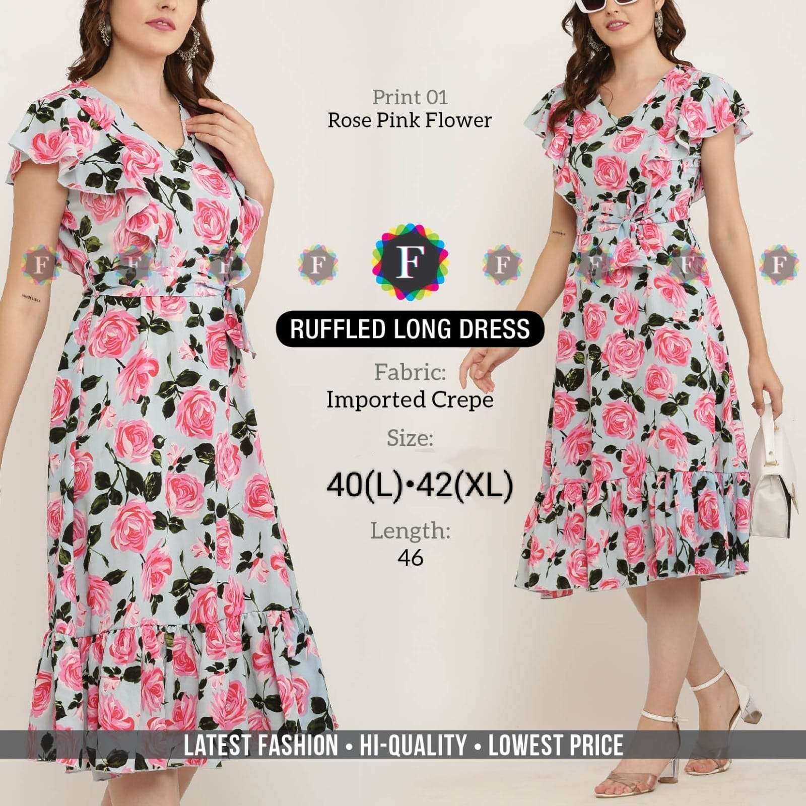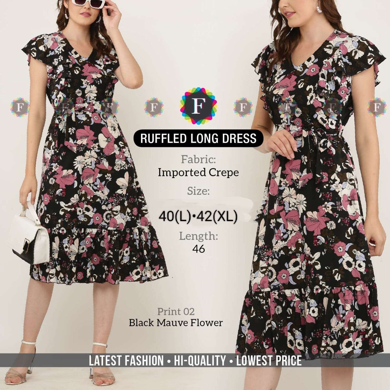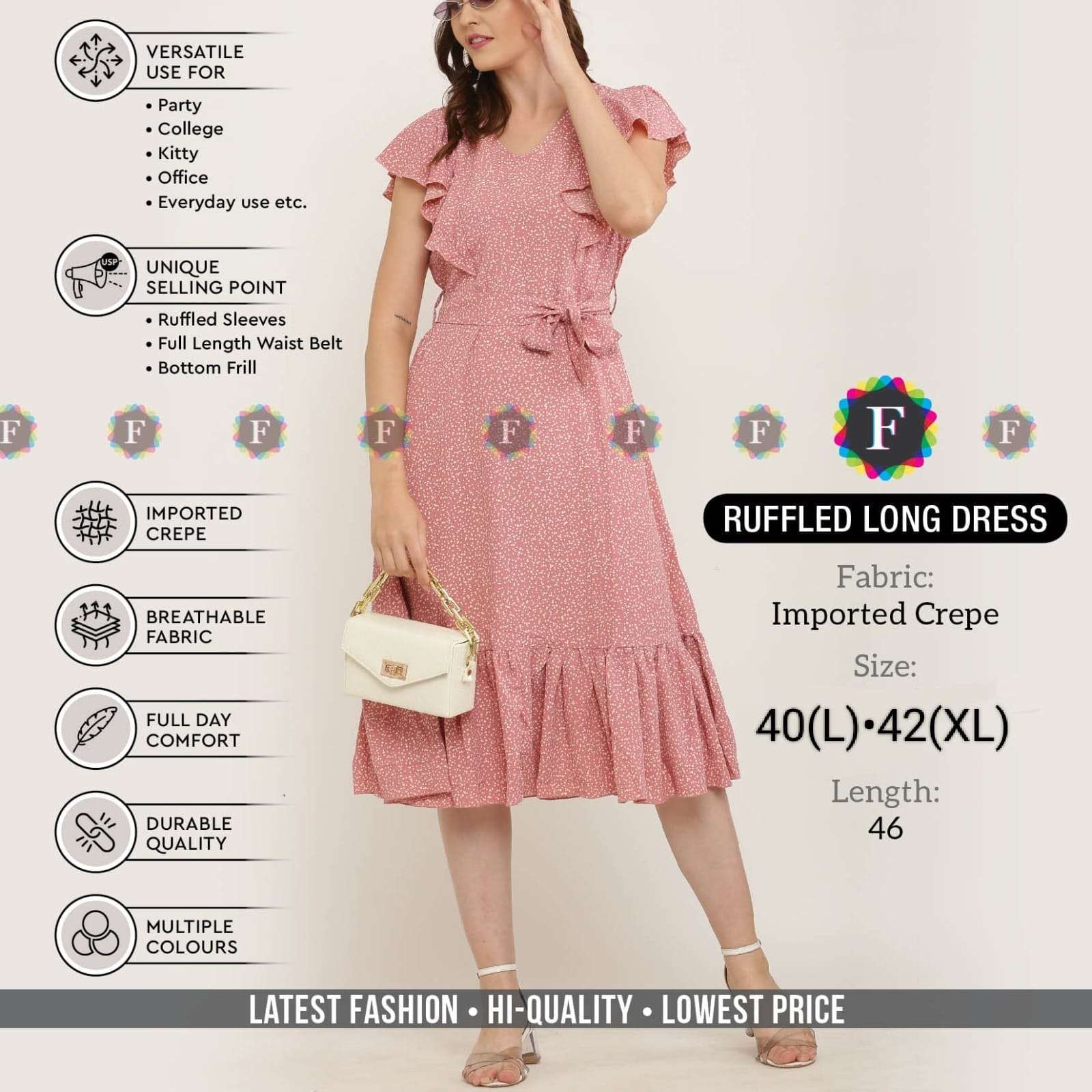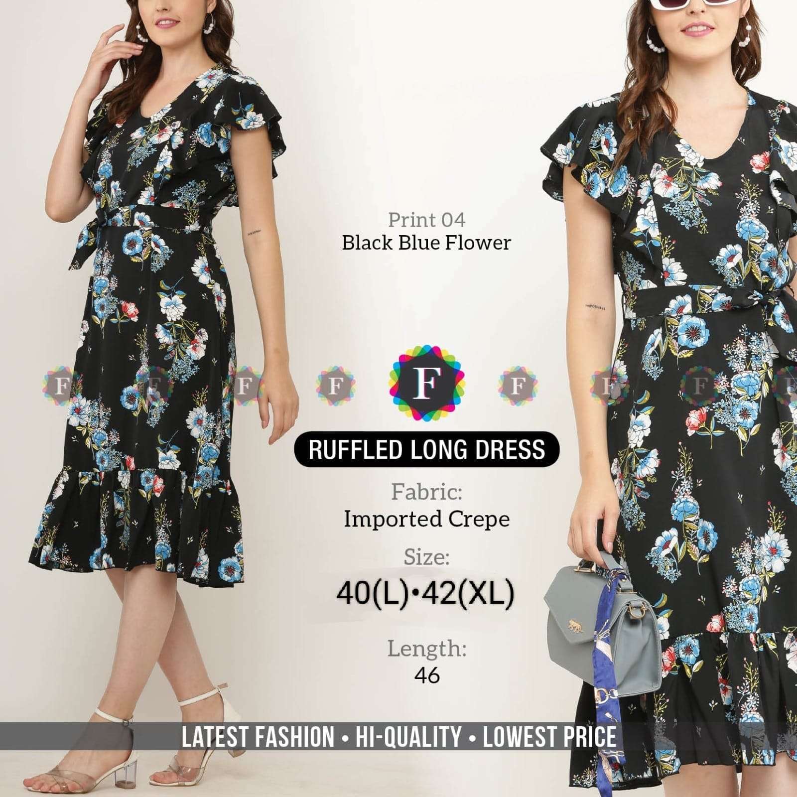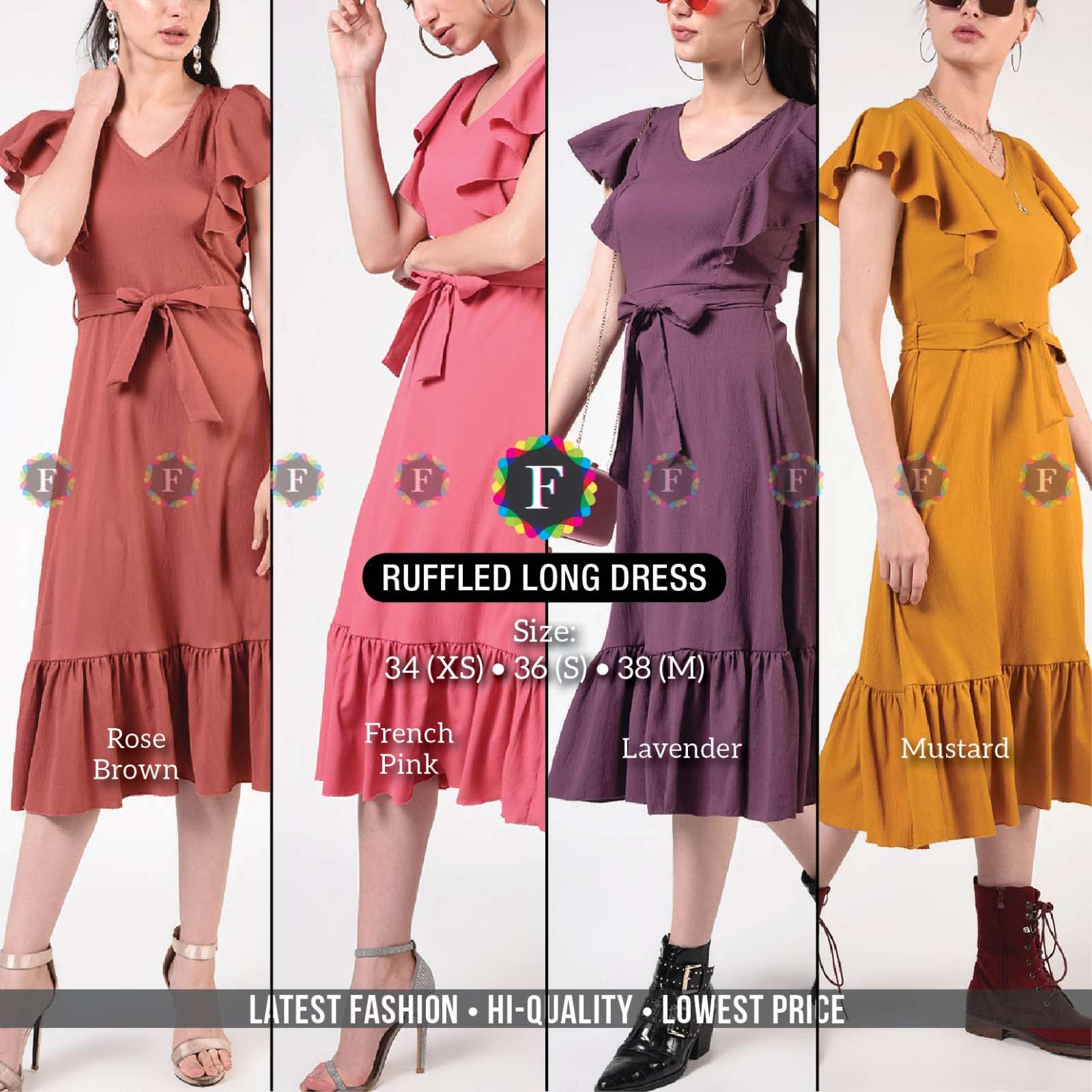 BOOK CATALOGUE RUFFLED LONG DRESS ON KRISHNA CREATION. CALL ON +91-8866778727.