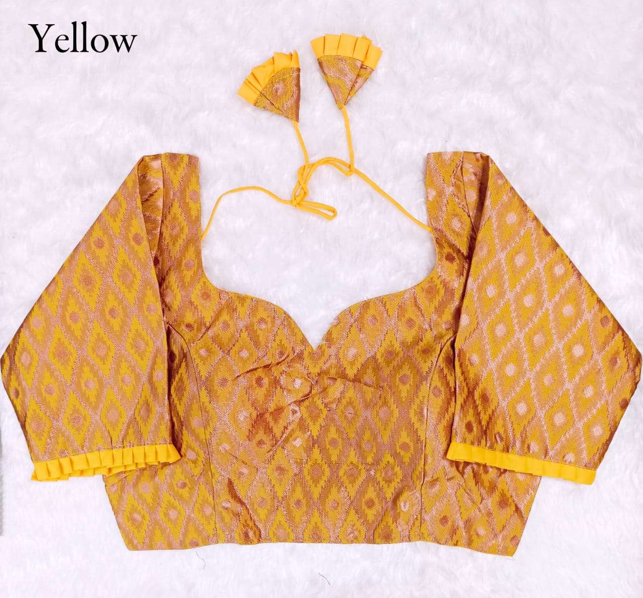COPPER JACQUARD FRILL ➡️ Fabric- COPPER JACQUARD ➡️WORK- COPPER JARI WEAVING ➡️Design- JACQUARD FRILL ➡️ Size- 38 Ready ➡️Colour:- (8 Colours Available) ➡️ Price- 300/- ➡️SHIPPING EXTRA ➡️ BOOK FAST READY STOCK |