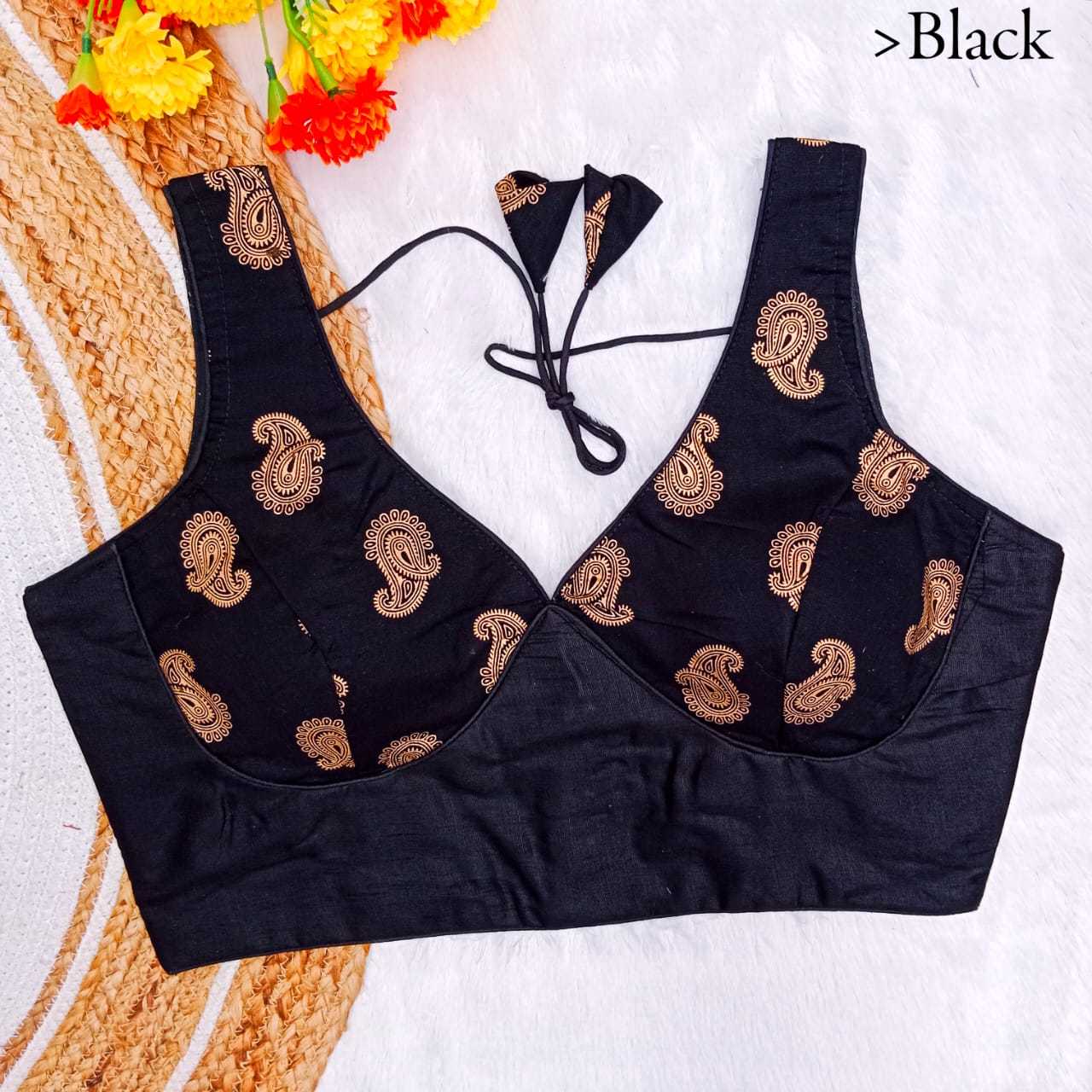 ➡️ PURE COTTON GOLD FOIL BLACK PATTA SABYASACHI PATTERN ➡️Design- COTTON BLACK PATTA ➡️Fabric- PURE COTTON GOLD FOIL ➡️Inner- Cotton ➡️Work- Gold Foil ➡️Pattern- SABYASACHI ➡️Quality- A1 ➡️Padded- Yes ➡️Size- 38 Ready ➡️Length- 15 Inch ➡️Open Type- Back Hook ➡️Sleev- Elbow Sleeves Inside ➡️Colour:- (6 Colours Available) 🖤💛🧡❤️🩷️💙💜🤍🤎 ➡️Price- 265/- ➡️SHIPPING EXTRA ➡️ BOOK FAST READY STOCK |
