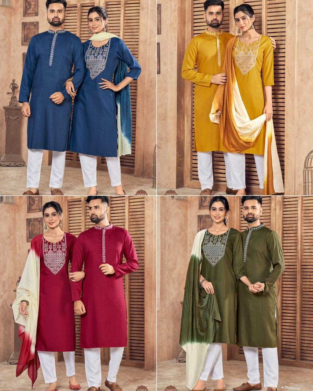 pr couple goal vol 6 kurta with payjama and kurti pant and dupatta for couple combo set