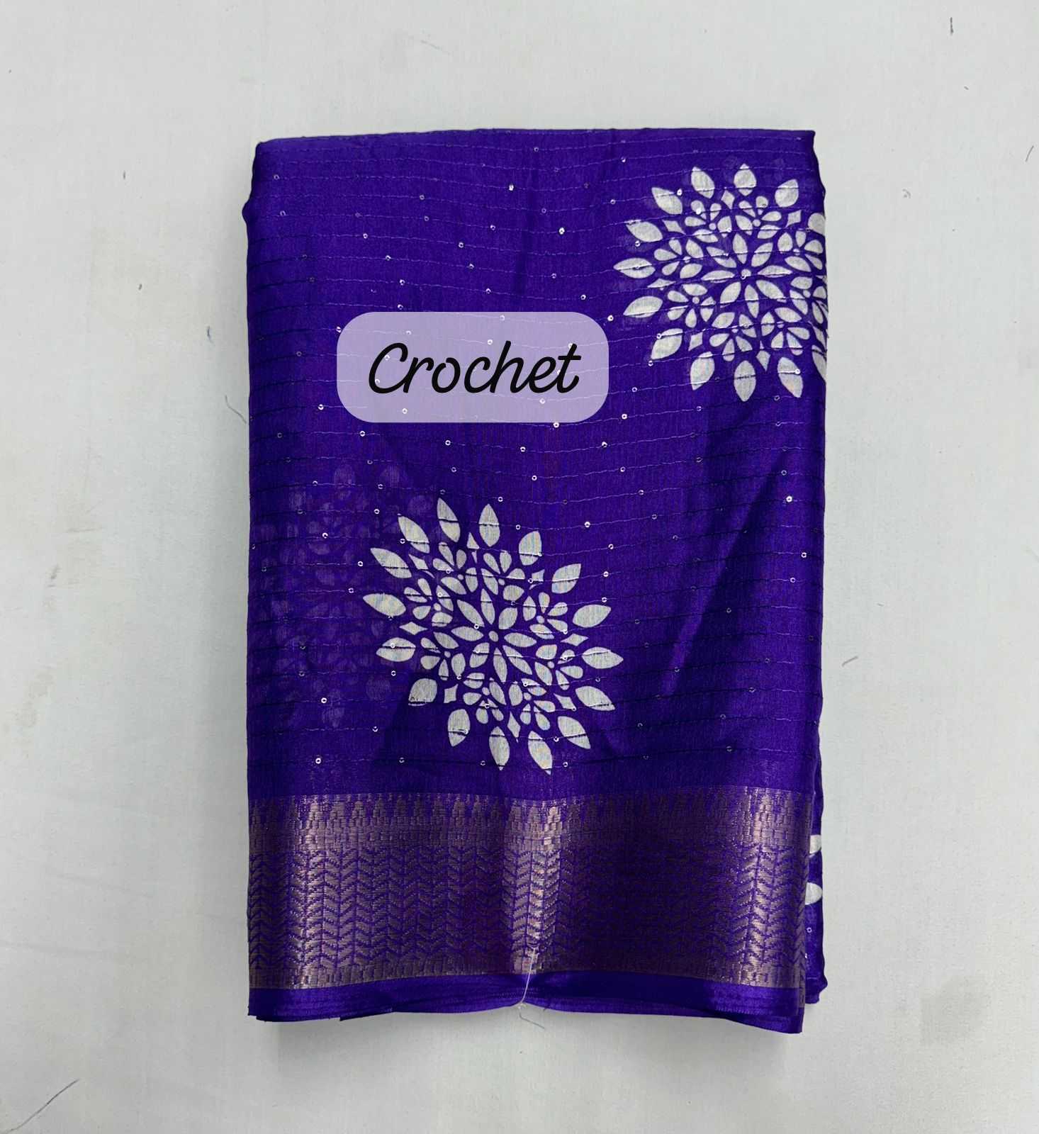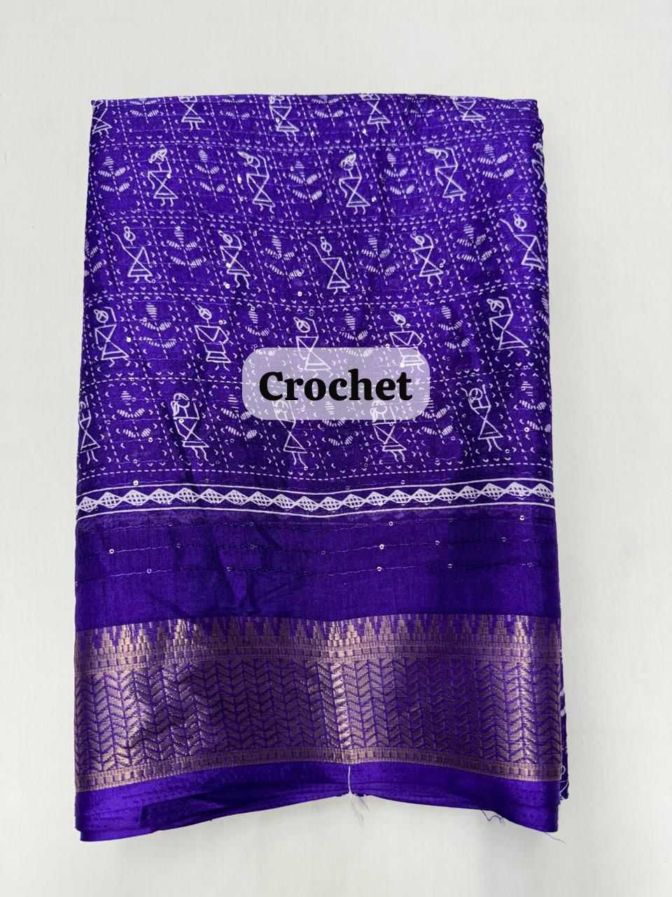 pr crochet on dola doby fancy border regular use purple saree collection