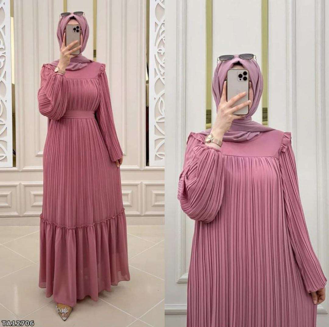 pr crush frill georgette fullstitch abaya with belt and same colour hijab