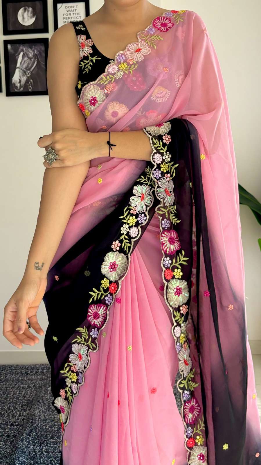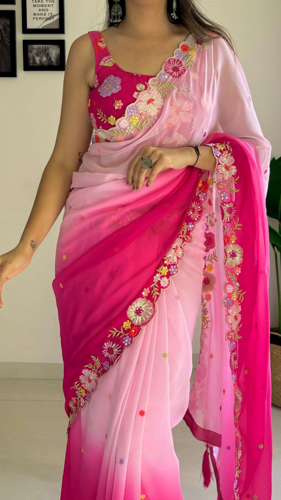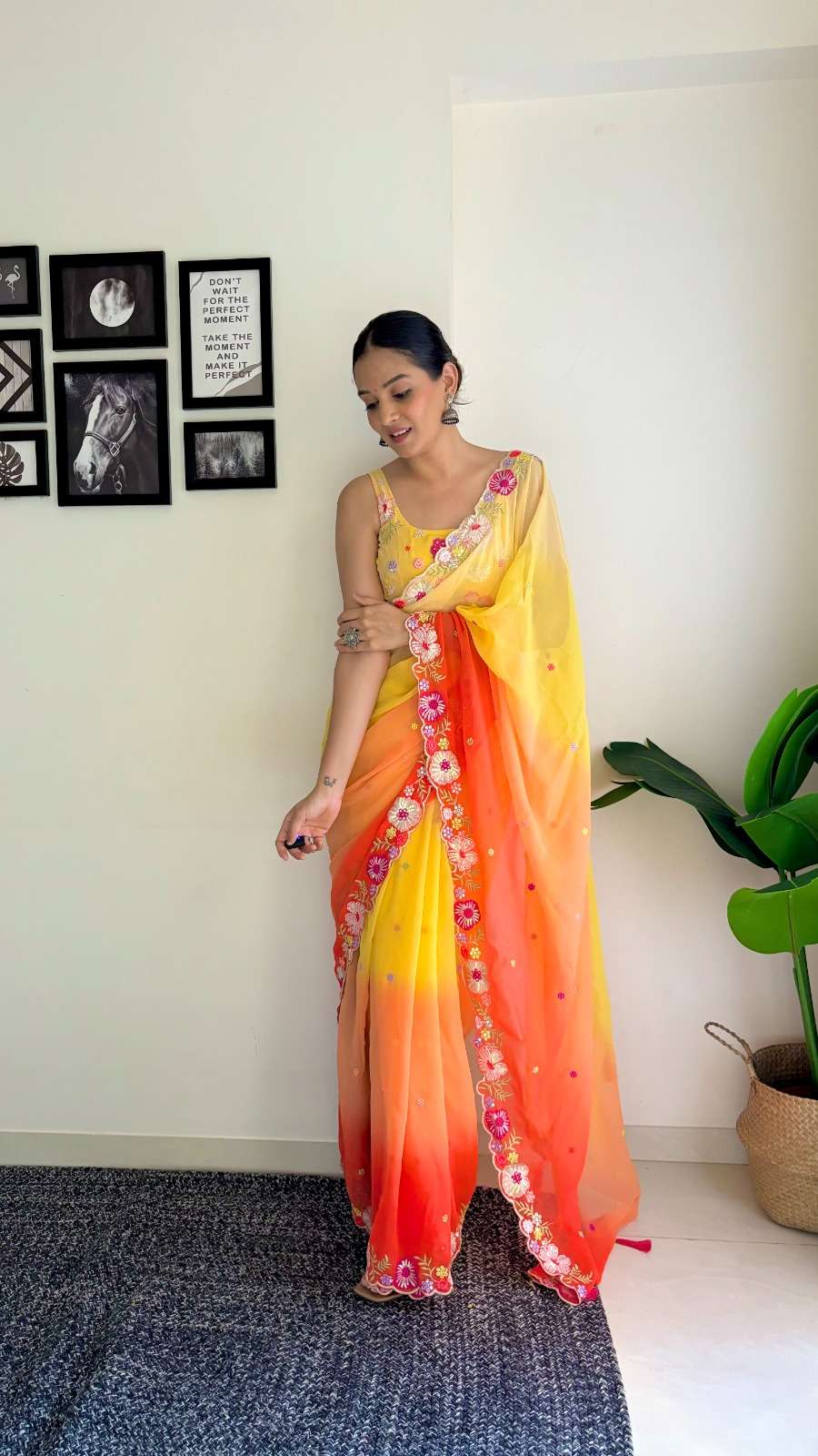 🛑SAREE FABRIC- Faux Georgette 🛑SAREE LENGTH- 5.50 Mtr 🛑SAREE WORK- Multicolour seqwance work and embroidery work with arca cutting 🛑BLOUSE FABRIC- Faux georgette with embroidery work RATE - 1149/-😍😍😍 |