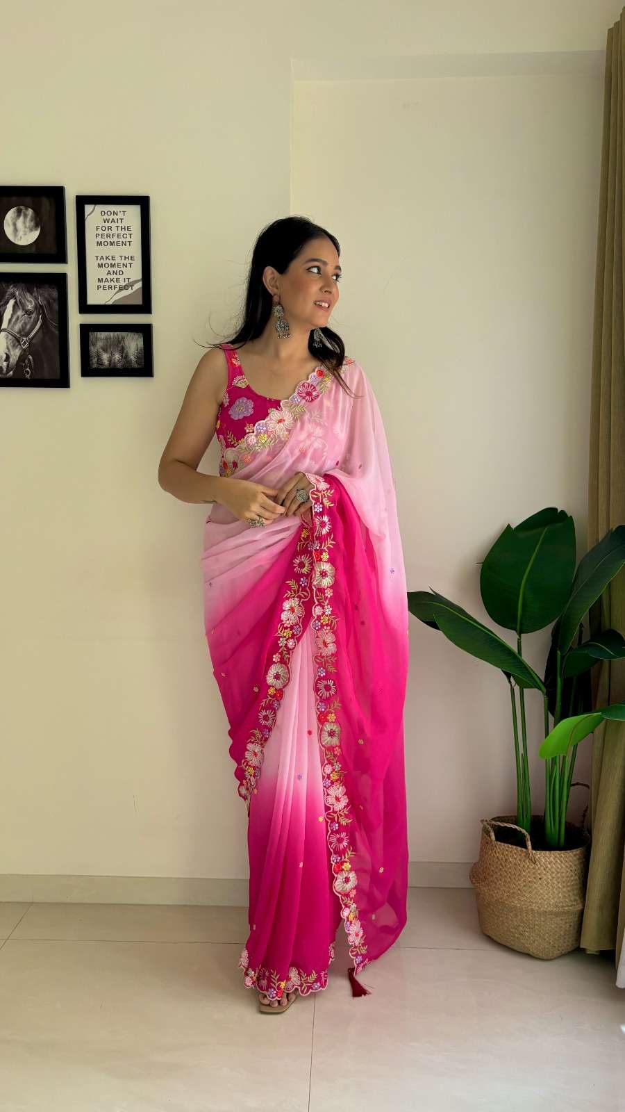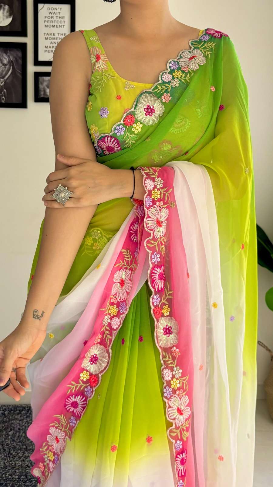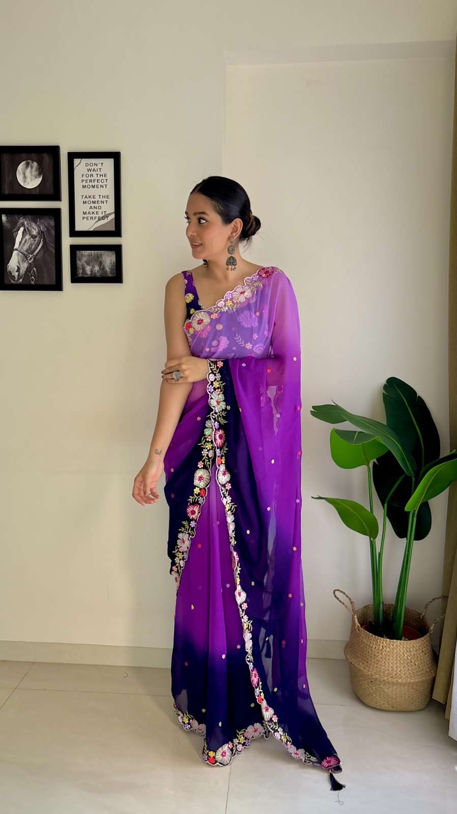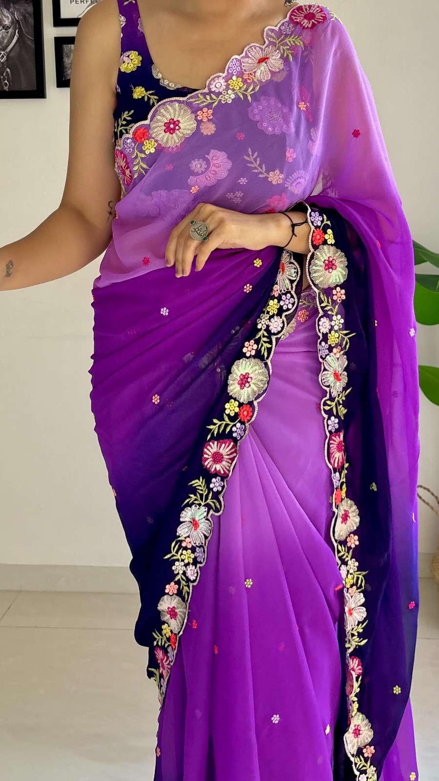 🛑SAREE FABRIC- Faux Georgette 🛑SAREE LENGTH- 5.50 Mtr 🛑SAREE WORK- Multicolour seqwance work and embroidery work with arca cutting 🛑BLOUSE FABRIC- Faux georgette with embroidery work RATE - 1149/-😍😍😍 |