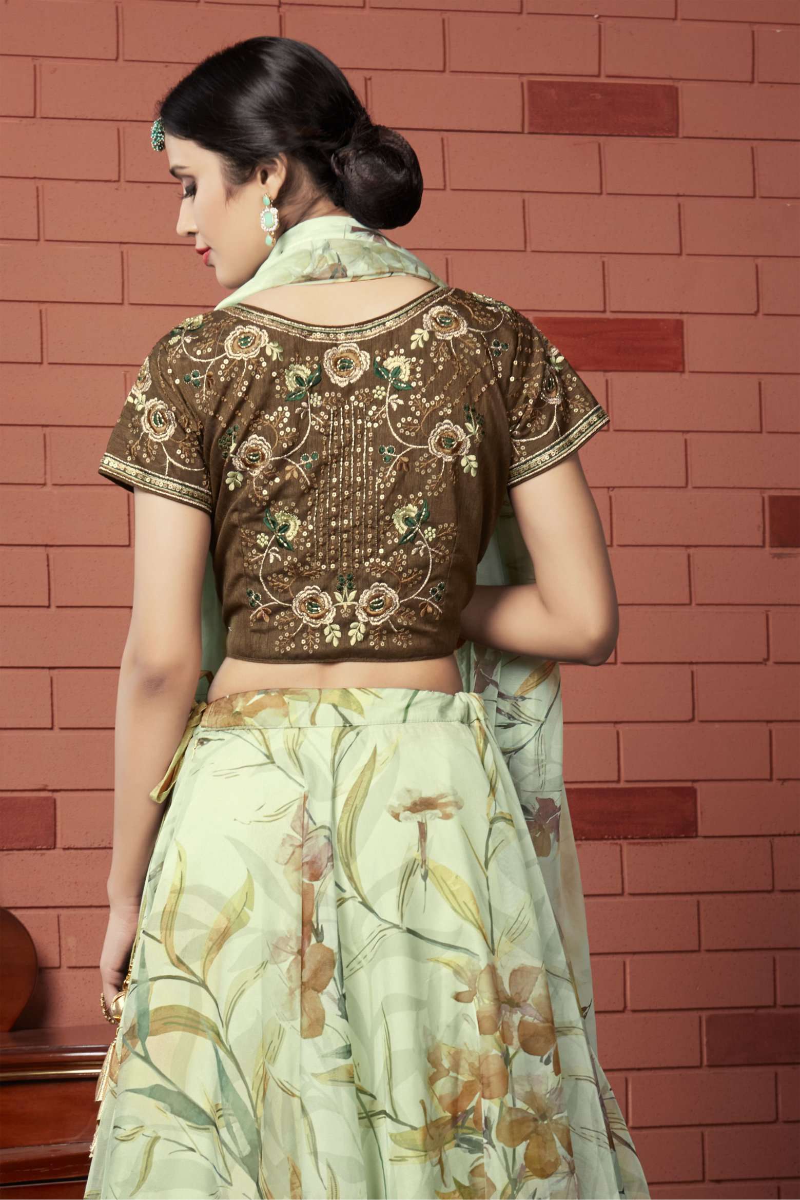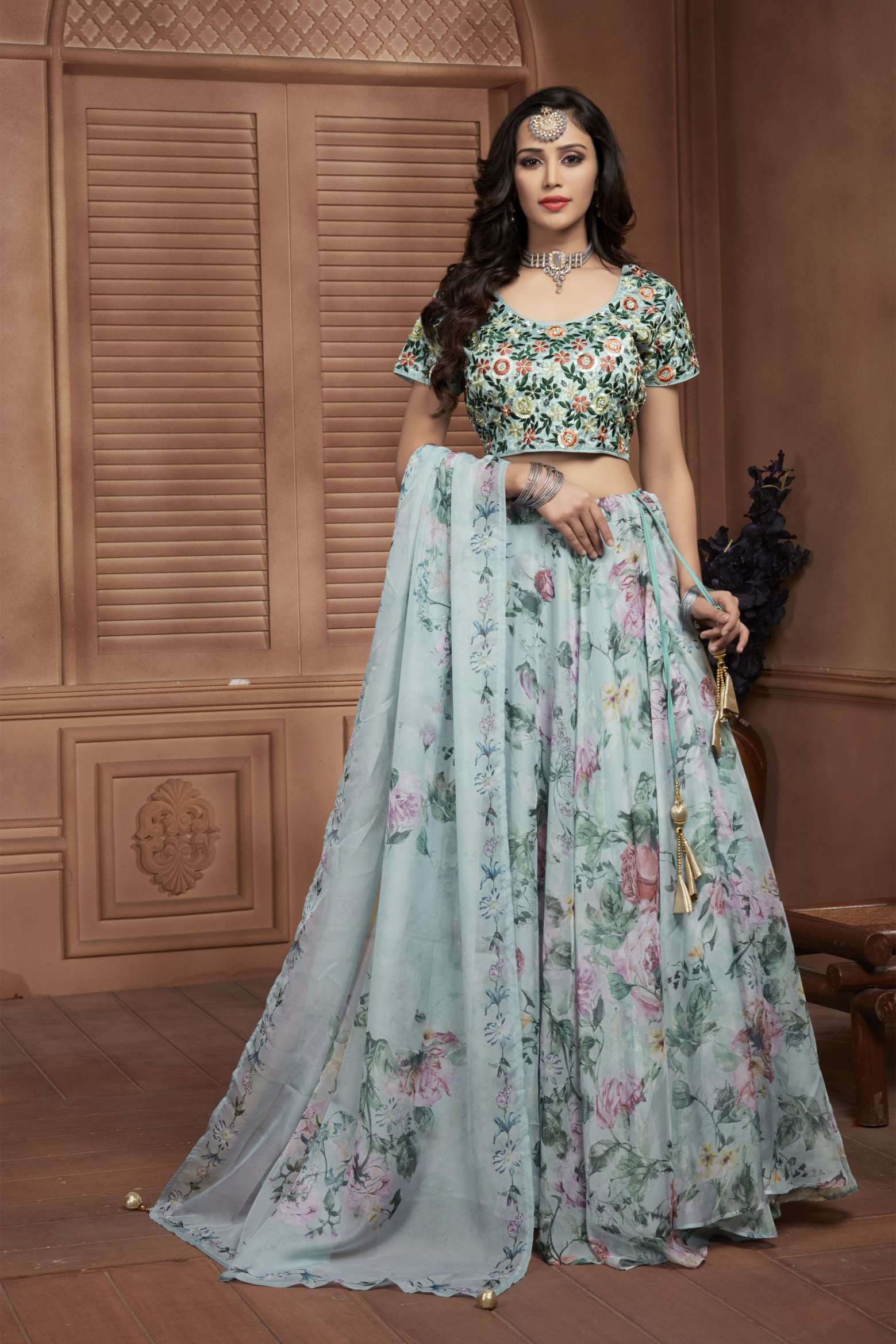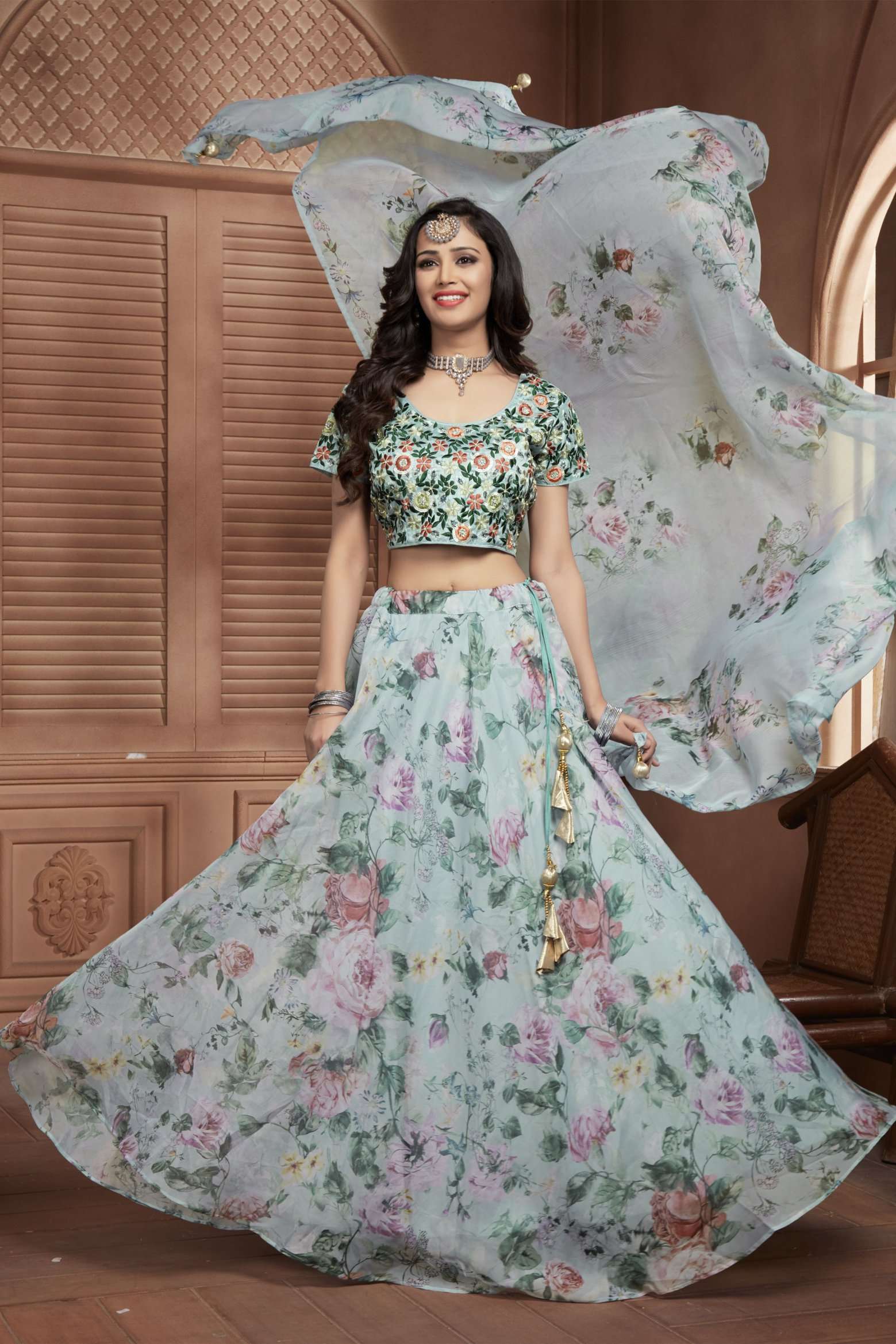 READYMADE CROP TOP DESIGN NO C-1962,1980,1981,1982,1983 BLOUSE FANCY HANDWORK + EMBROIDERED BLOUSE LEHENGA PREMIUM PURE ORGANZA PRINT SKIRT SIZE FREE SIZE (38 READY) FULLY STICHED SLEEVE INSIDE RATE 2695+12% (GST) |