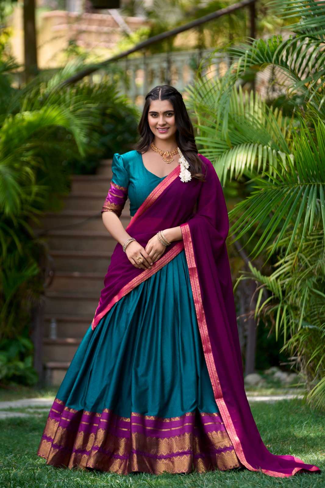 pr dhruvika cotton zari weaving work stitch lehenga unstitch blouse dupatta