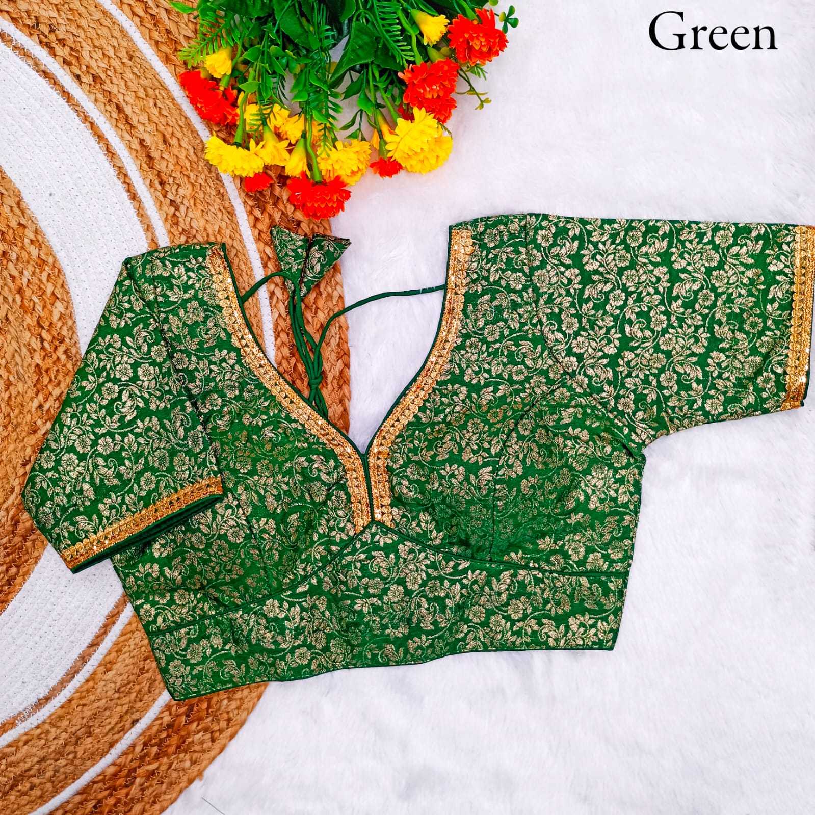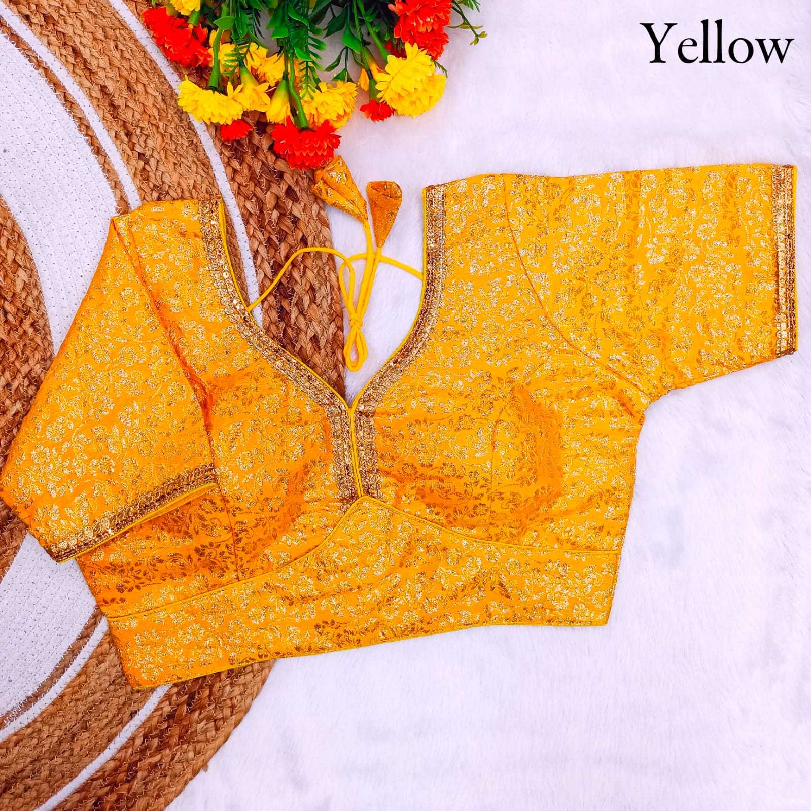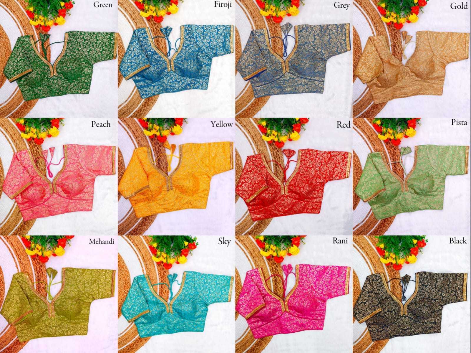Pure Dola Silk Sabyasachi Lace Pattern ➡️Design- Dola Lace ➡️Fabric- Pure Dola Silk ➡️Inner- Cotton ➡️Work- Fabric Weaving Jari Work ➡️Pattern- SABYASACHI ➡️Quality- A1 ➡️Padded- Yes ➡️Size- 38 Ready ➡️Length- 15 Inch ➡️Open Type- Back Hook ➡️Sleev- Elbow Sleeves Atteched ➡️Colour:- (12 Colours Available) 🖤💛🧡❤️🩷️💙💜🤍🤎 ➡️Price- 360/- ➡️SHIPPING EXTRA |
