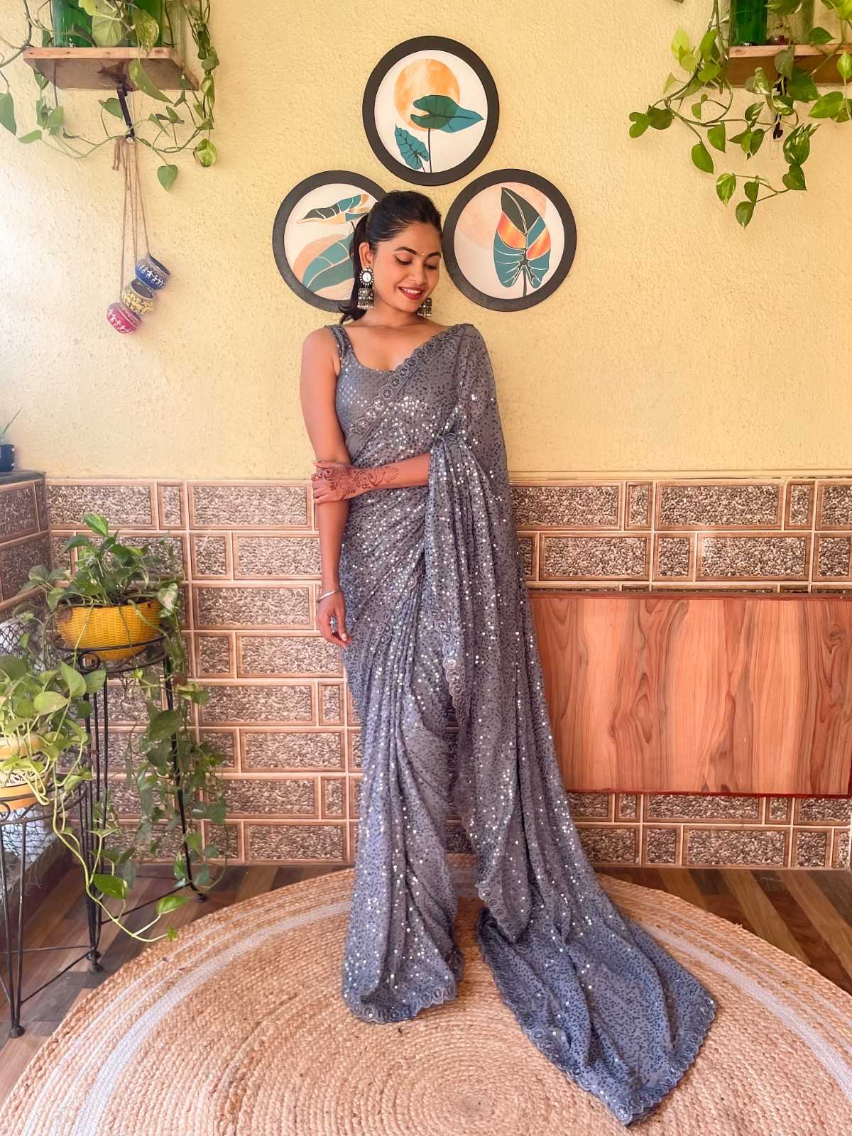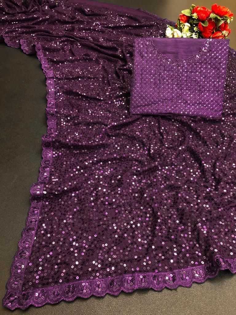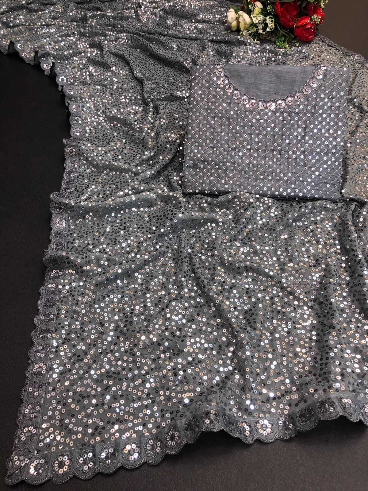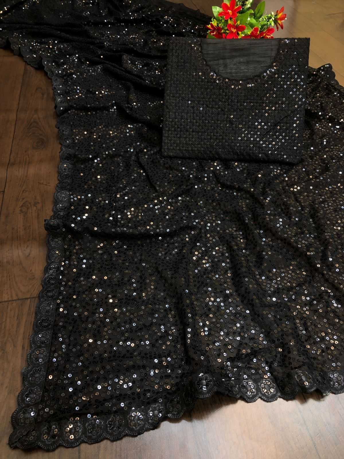 pr ds 458 georgette sequence work stylish elegant look saree wholesaler