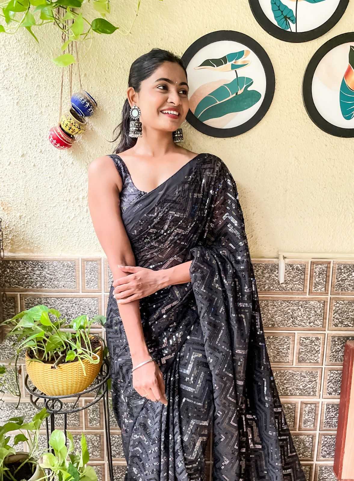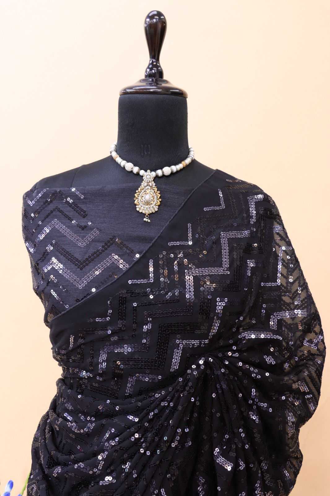 *Presenting you most beautiful seqwance saree collection * DS-568 👇 Fabric details 👇 🛑SAREE FABRIC- Georgette 🛑SAREE LENGTH- 5.50 Mtr Saree work is 4.40 mtr all over 🛑BLOUSE FABRIC- Satin banglori silk with both side dual shade seqwance work Classic and elegant, this saree will be a perfect addition to your ethnic wardrobe, offering a soothing and pretty wibe the adornment of seqwance work makes it impeccable RATE - 1050/- |