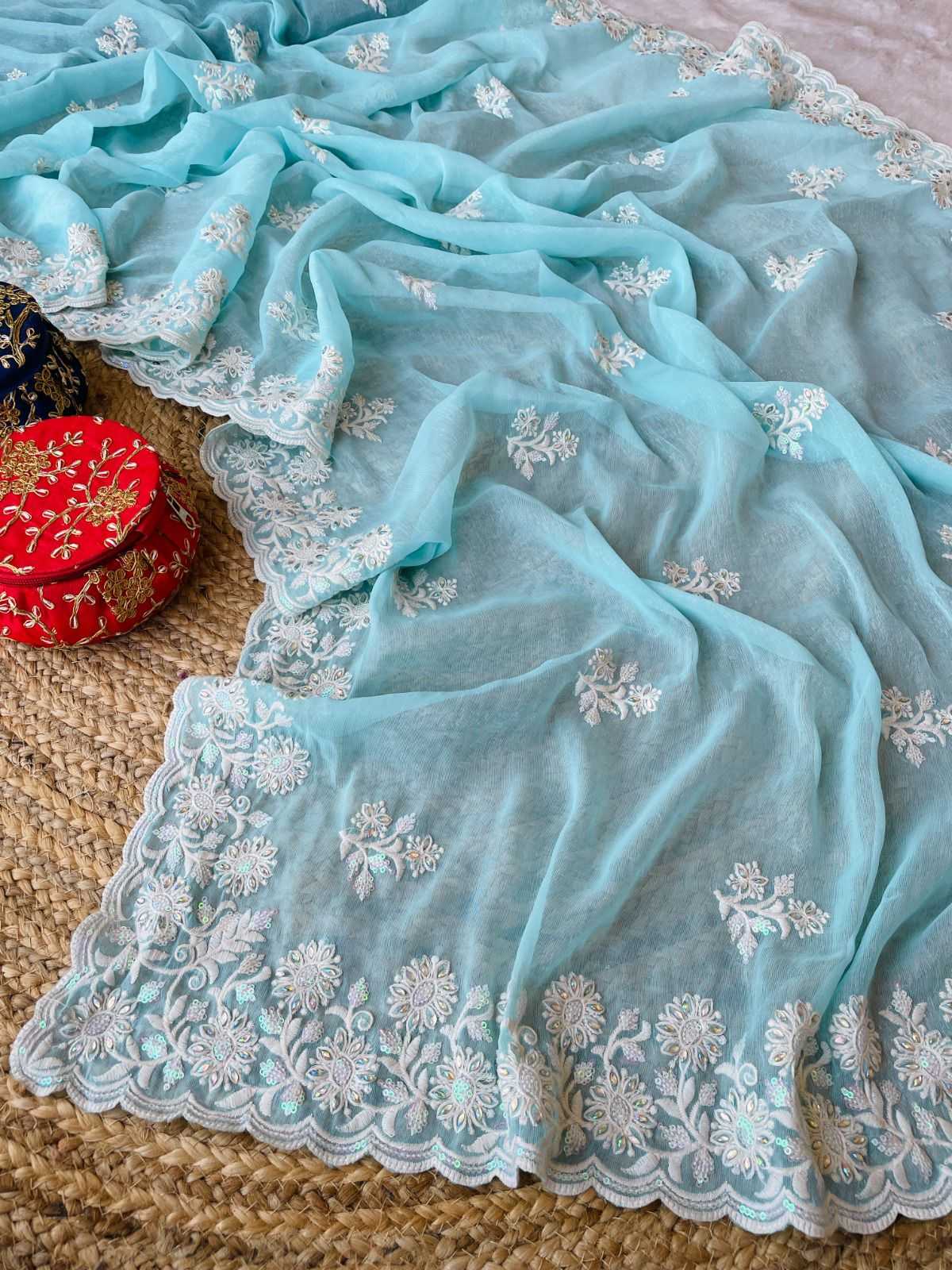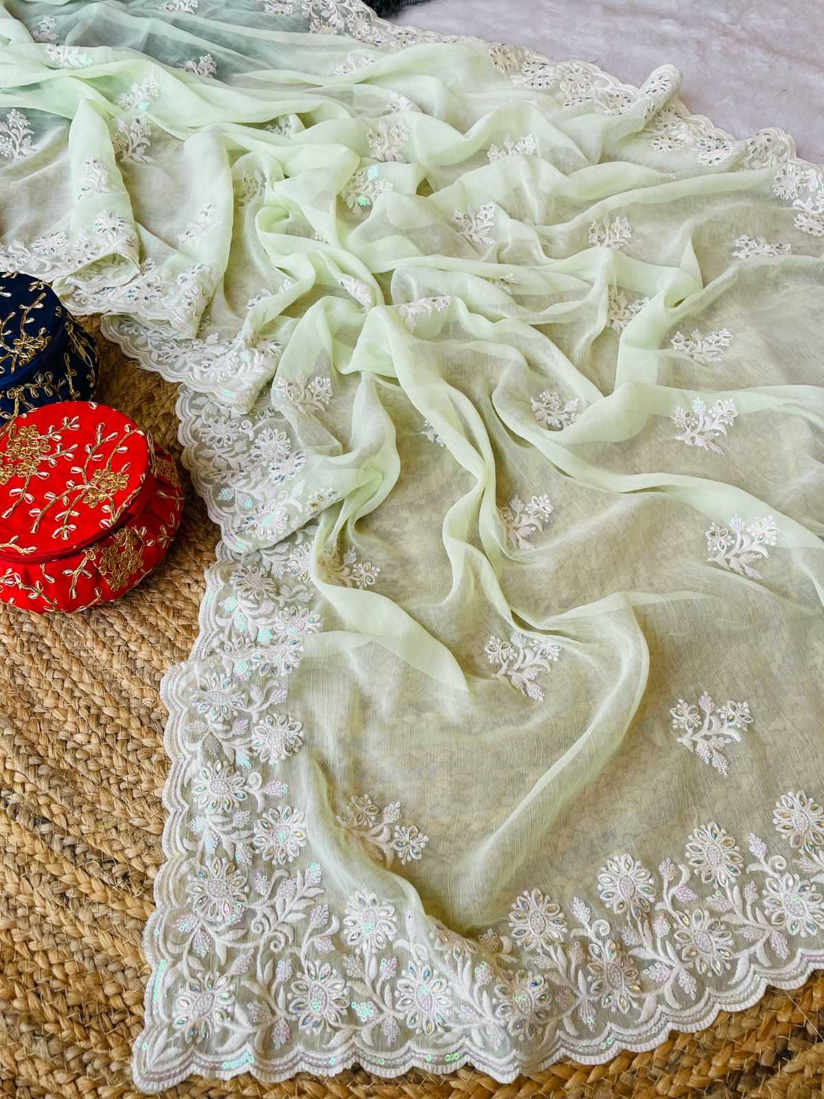 Classic and elegant, this saree will be a perfect addition to your ethnic wardrobe, offering a soothing and pretty wibe the adornment of seqwance work makes it impeccable RATE - 1149/- |