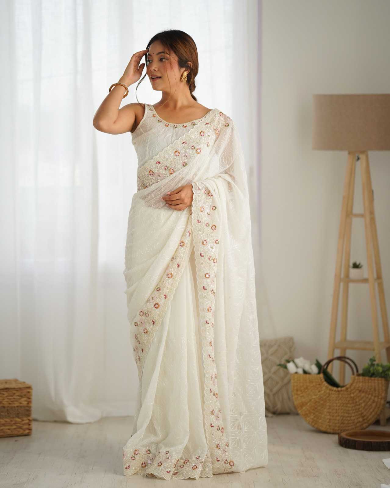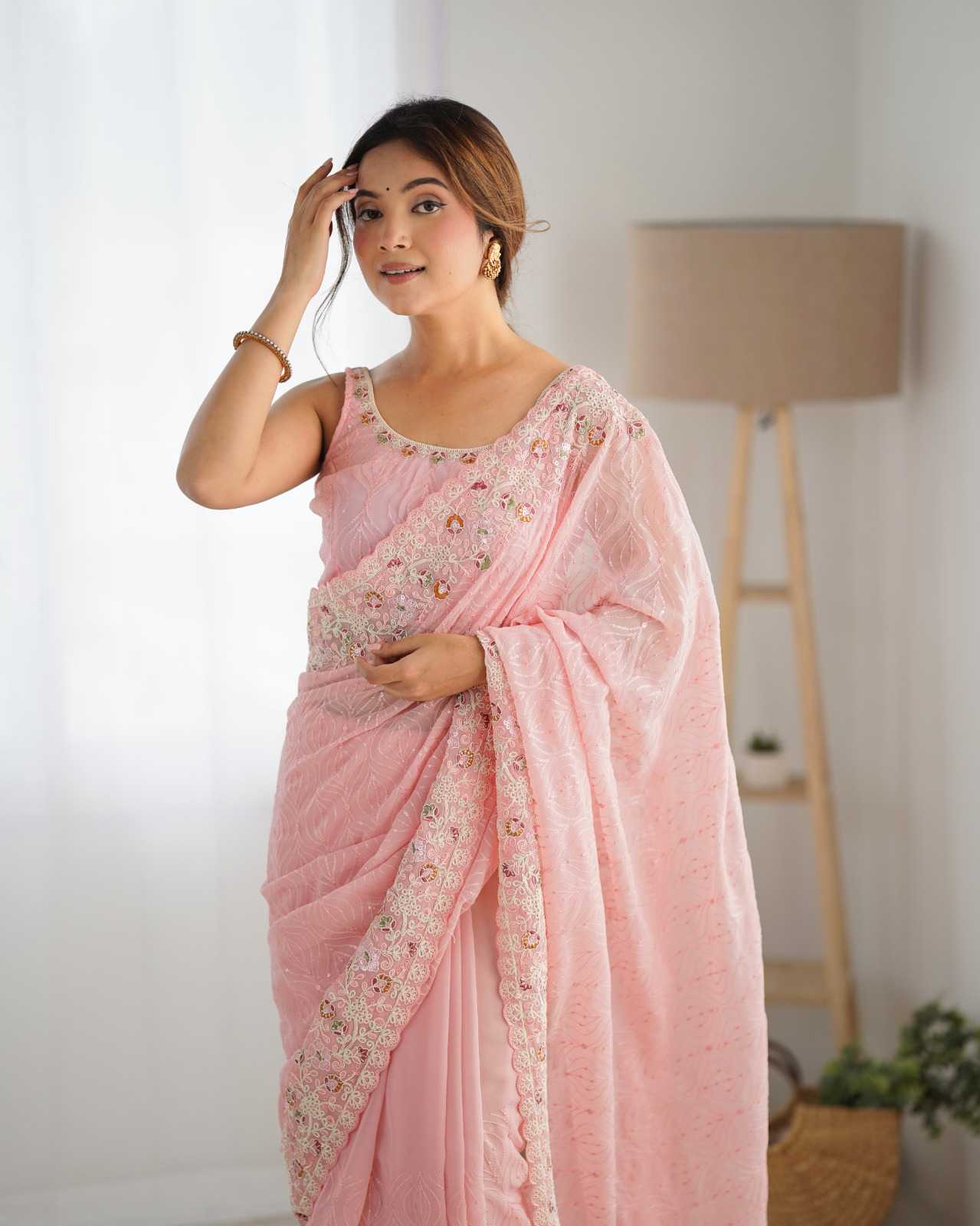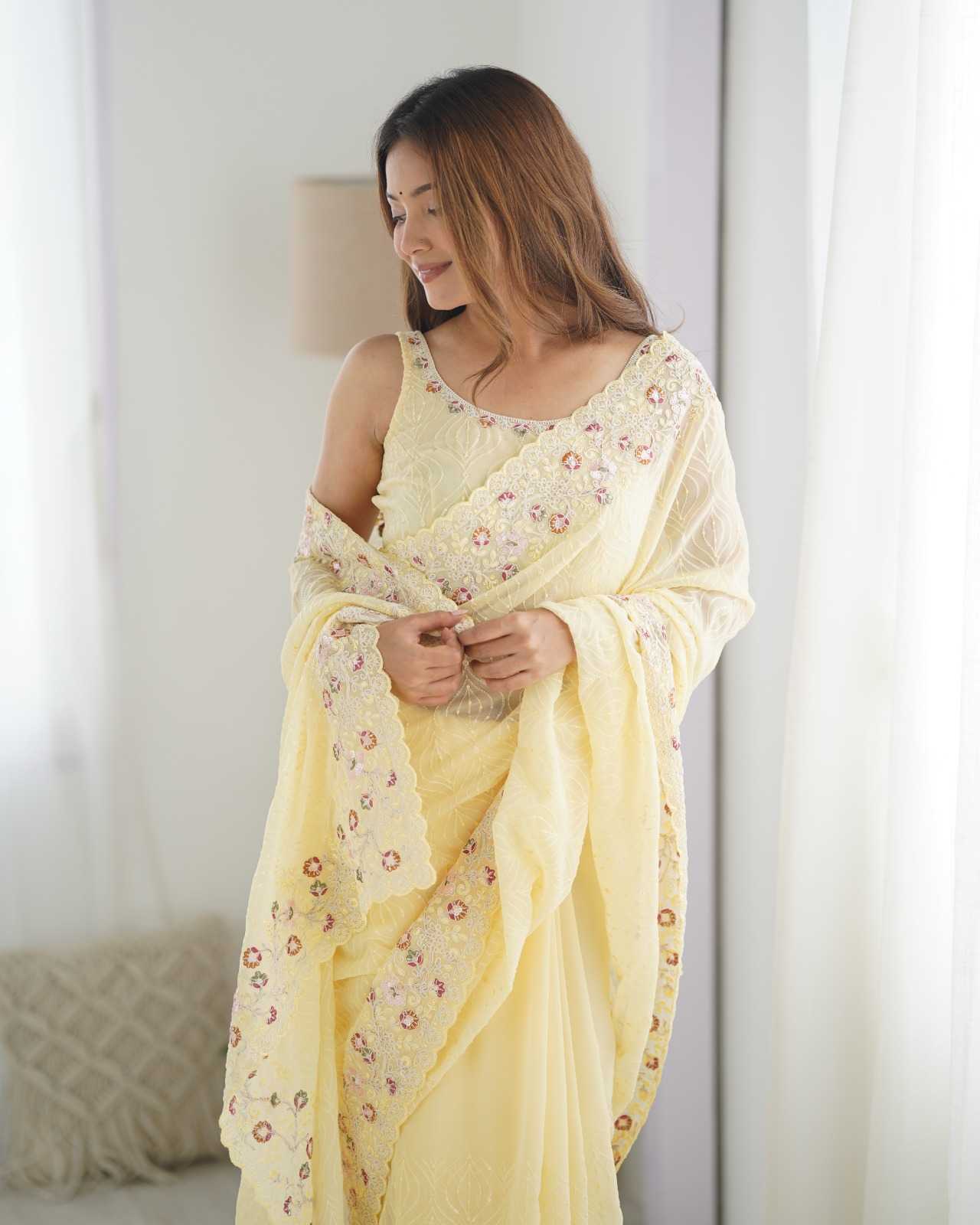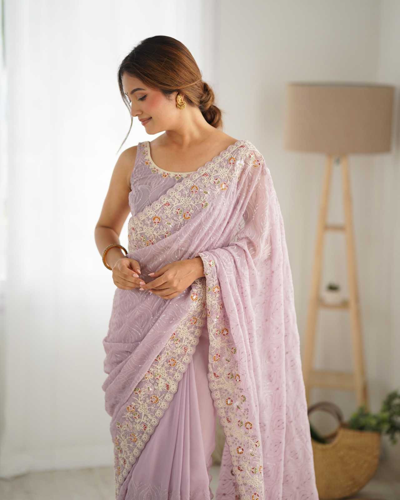 DS-641 👇 PRODUCT DETAIL 👇 🛑SAREE FABRIC- Georgette 🛑SAREE LENGTH- 5.50 Mtr 🛑BLOUSE FABRIC- Georgette with seqwance and coding work RATE - 1499/- |