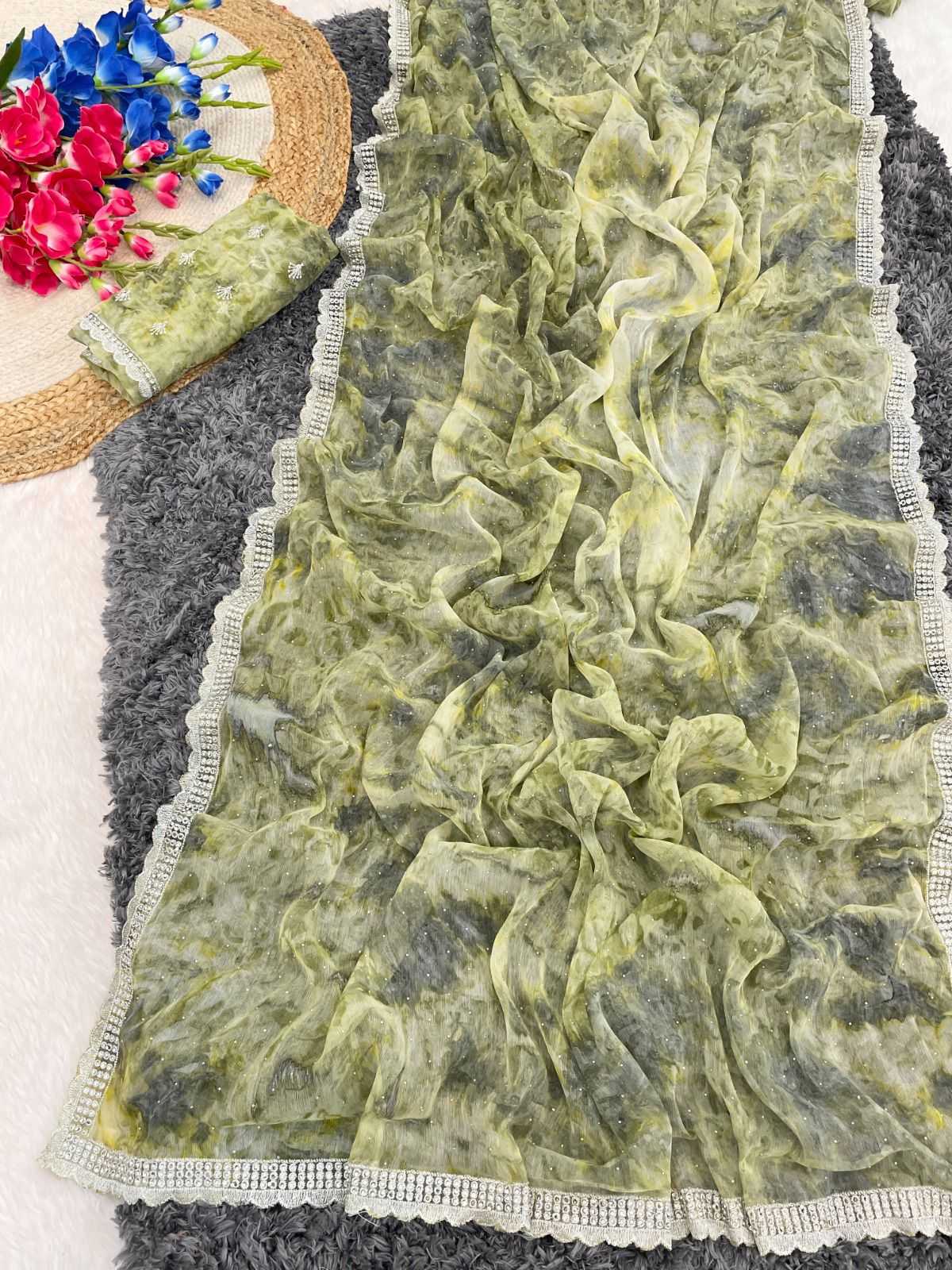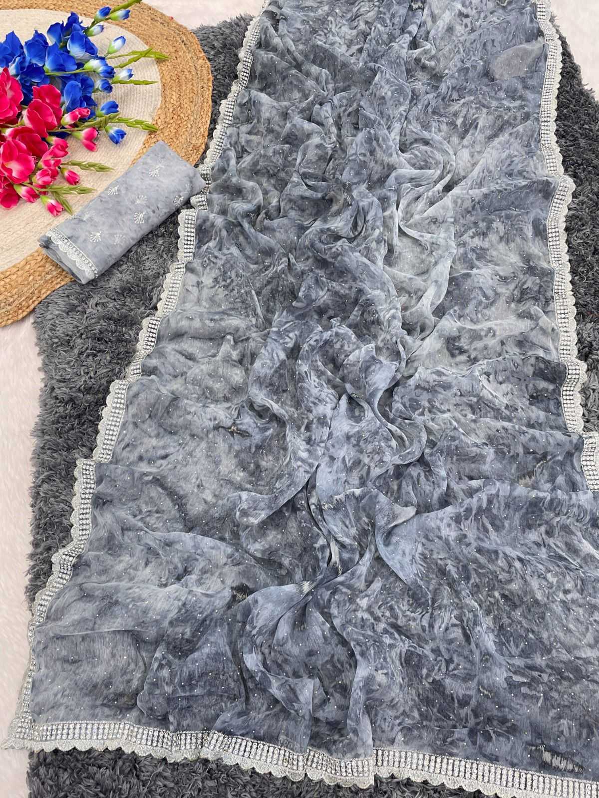 pr ds 648 shimmer prizam hit design fancy stone work saree with blouse