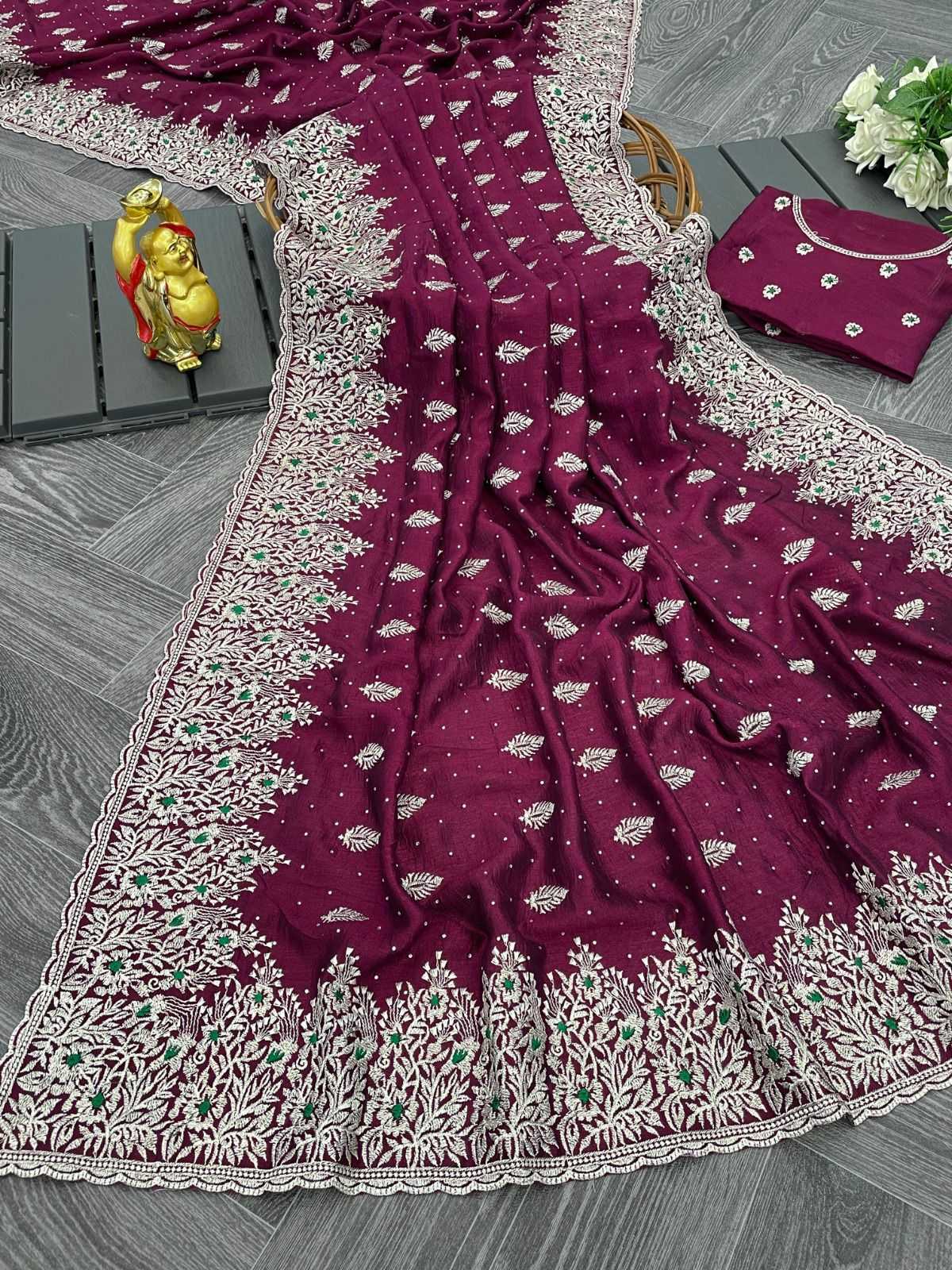 pr ds 688 vichitra silk stone work heavy designer saree with fancy blouse