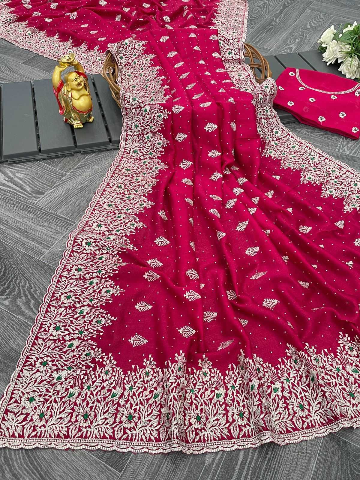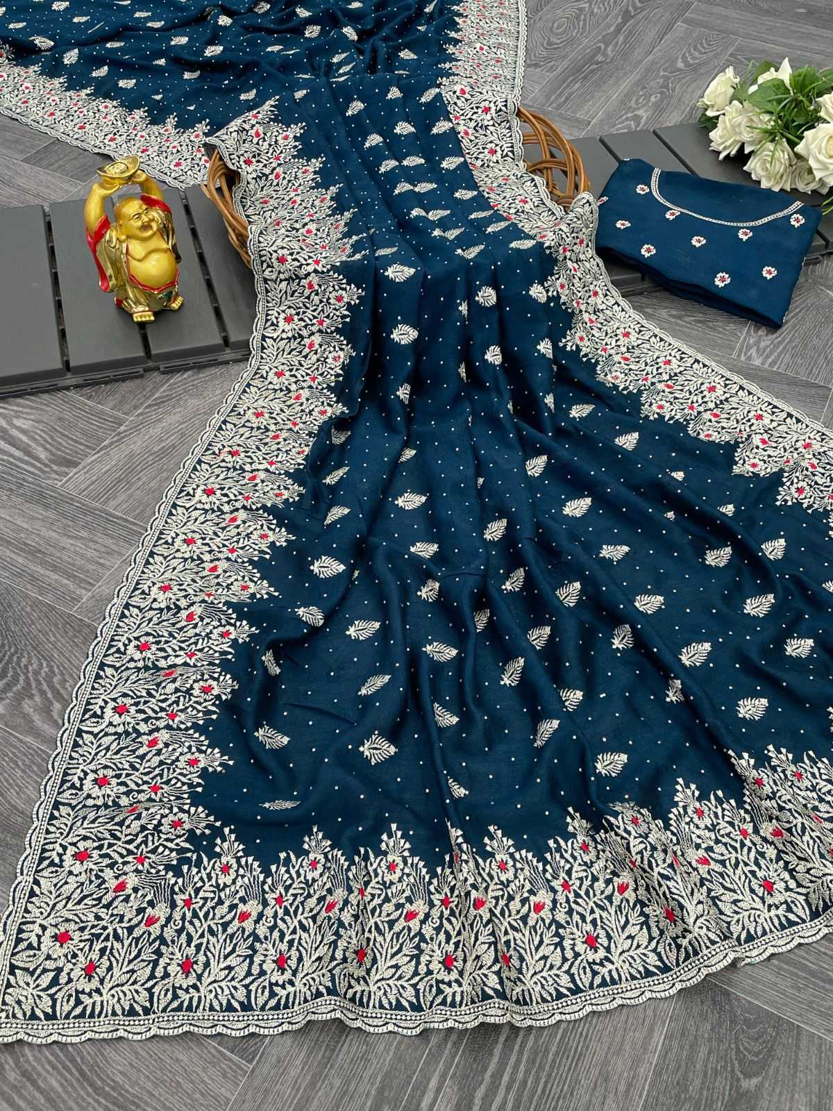 Presenting you most beautiful Saree collection DS-688 👇 Fabric details 👇 🛑SAREE FABRIC - Blooming Vichitra silk 🛑SAREE LENGTH- 5.50 Mtr 🛑SAREE WORK- Zari work with stone work 🛑BLOUSE FABRIC- Blooming Vichitra silk with embroidery work 🛑BLOUSE LENGTH- 1 Mtr with embroidery work Original quality RATE - 1199/- |