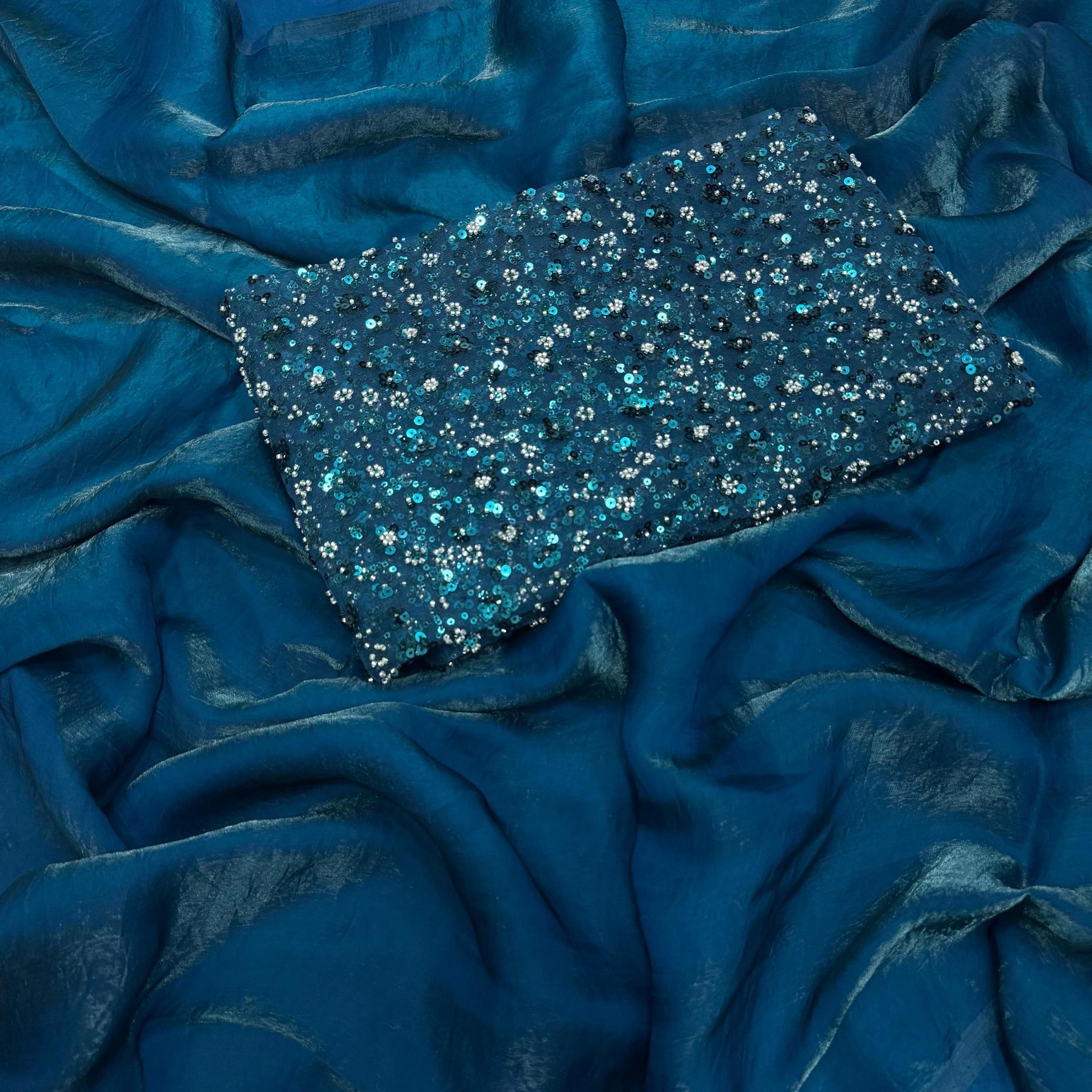 Most demanded space silk saree with beeds work blouse Elevate your style with this pure space silk saree & designer sugar beed blouse DS 702 Rate - 1249/- |