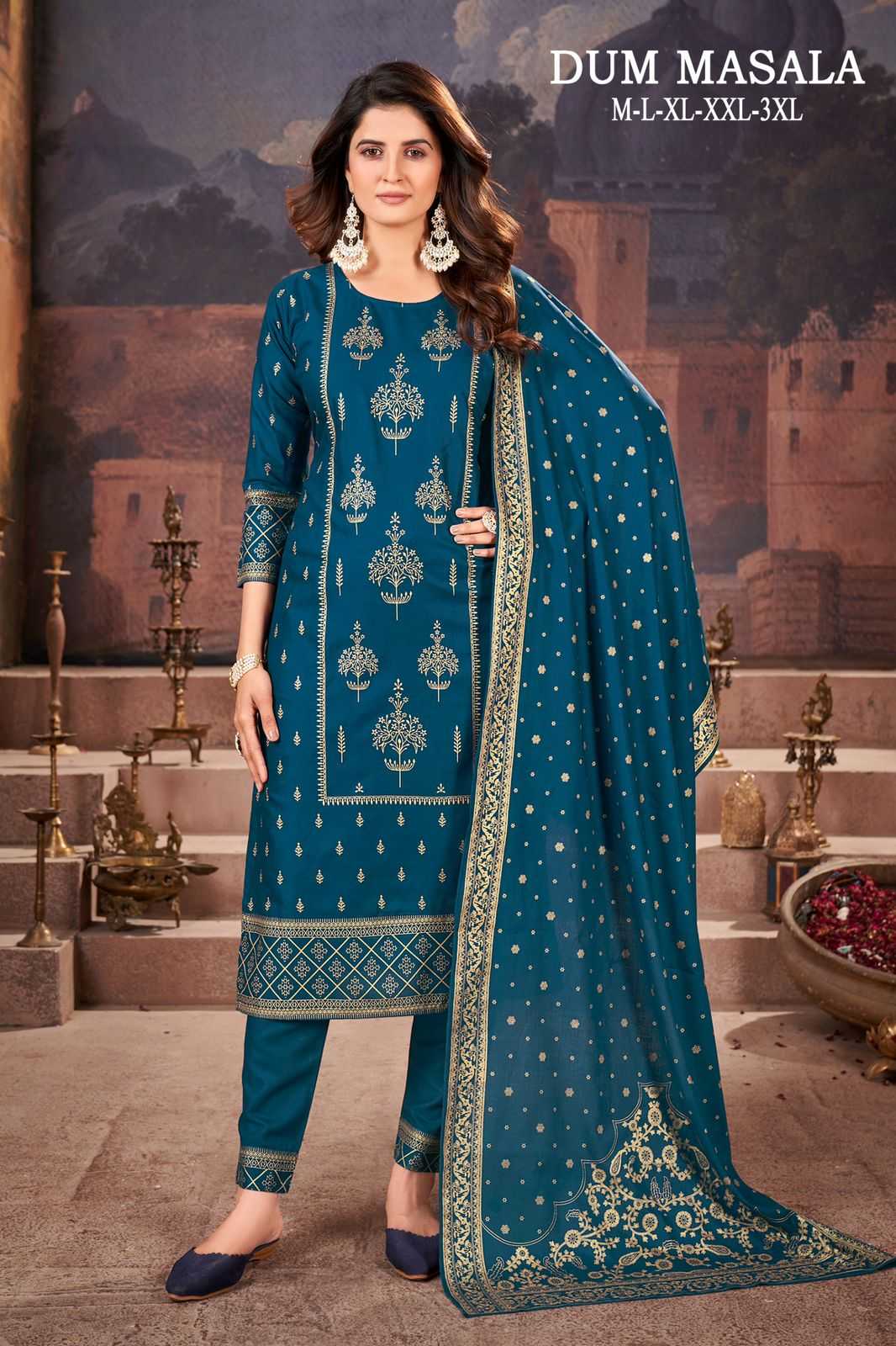 💐 DUM MASALA💐 👗. TOP RAYON GOLD PRINT 👖 BOTTOM RAYON 🧣 DUPTTA RAYON GOLD PRINT ➖ M L XL XXL 3XL 1-DESIGN Rate : 799/- |