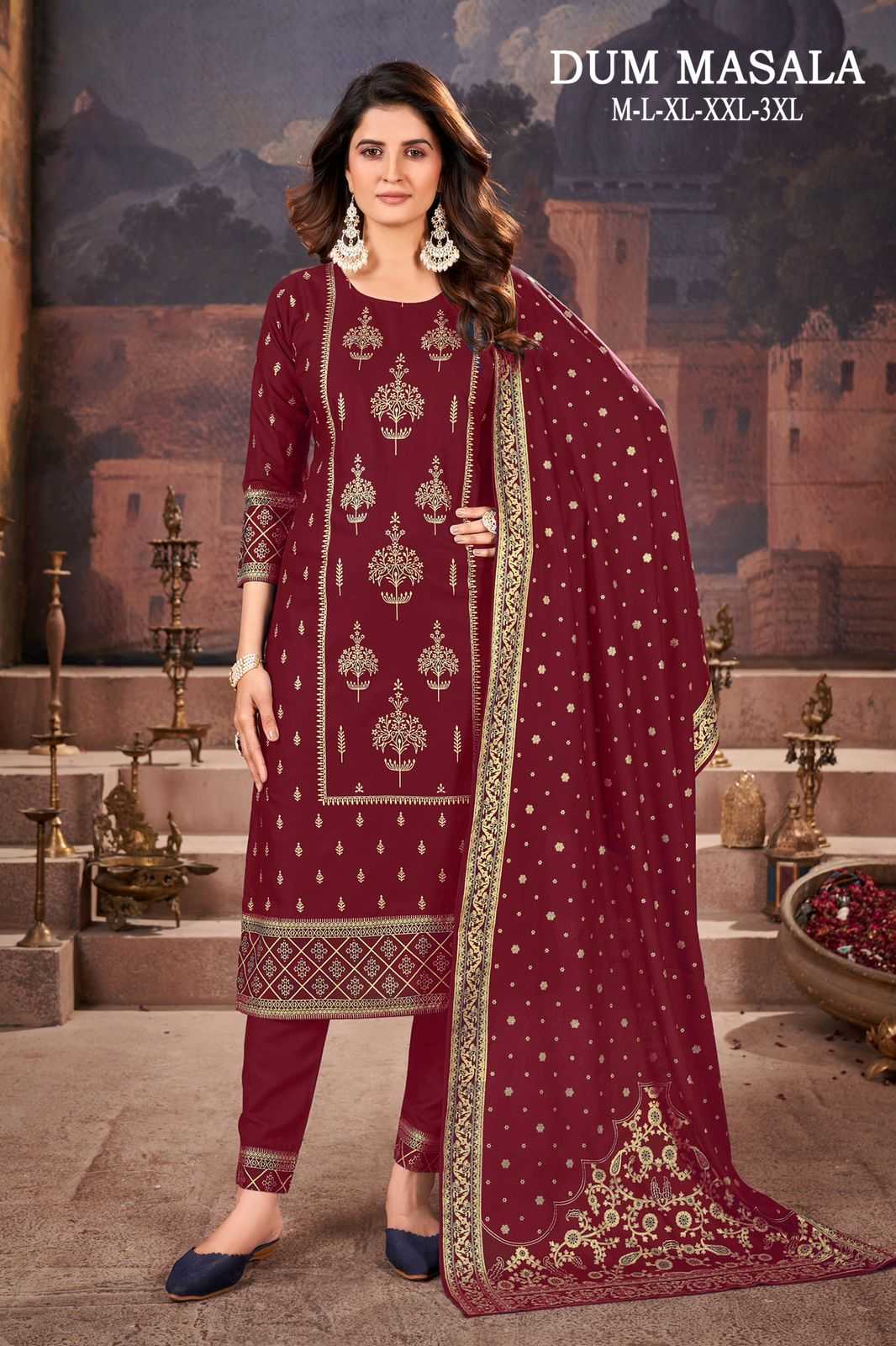 pr dum masala fullstitch rayon gold print kurti pant dupatta
