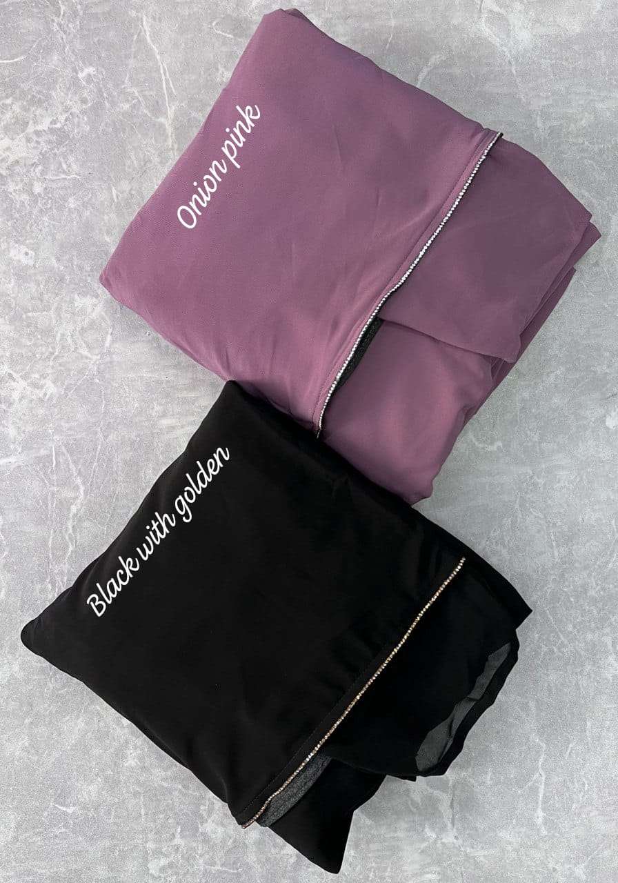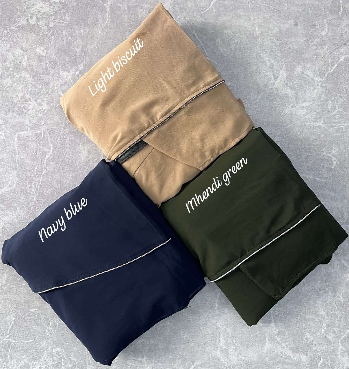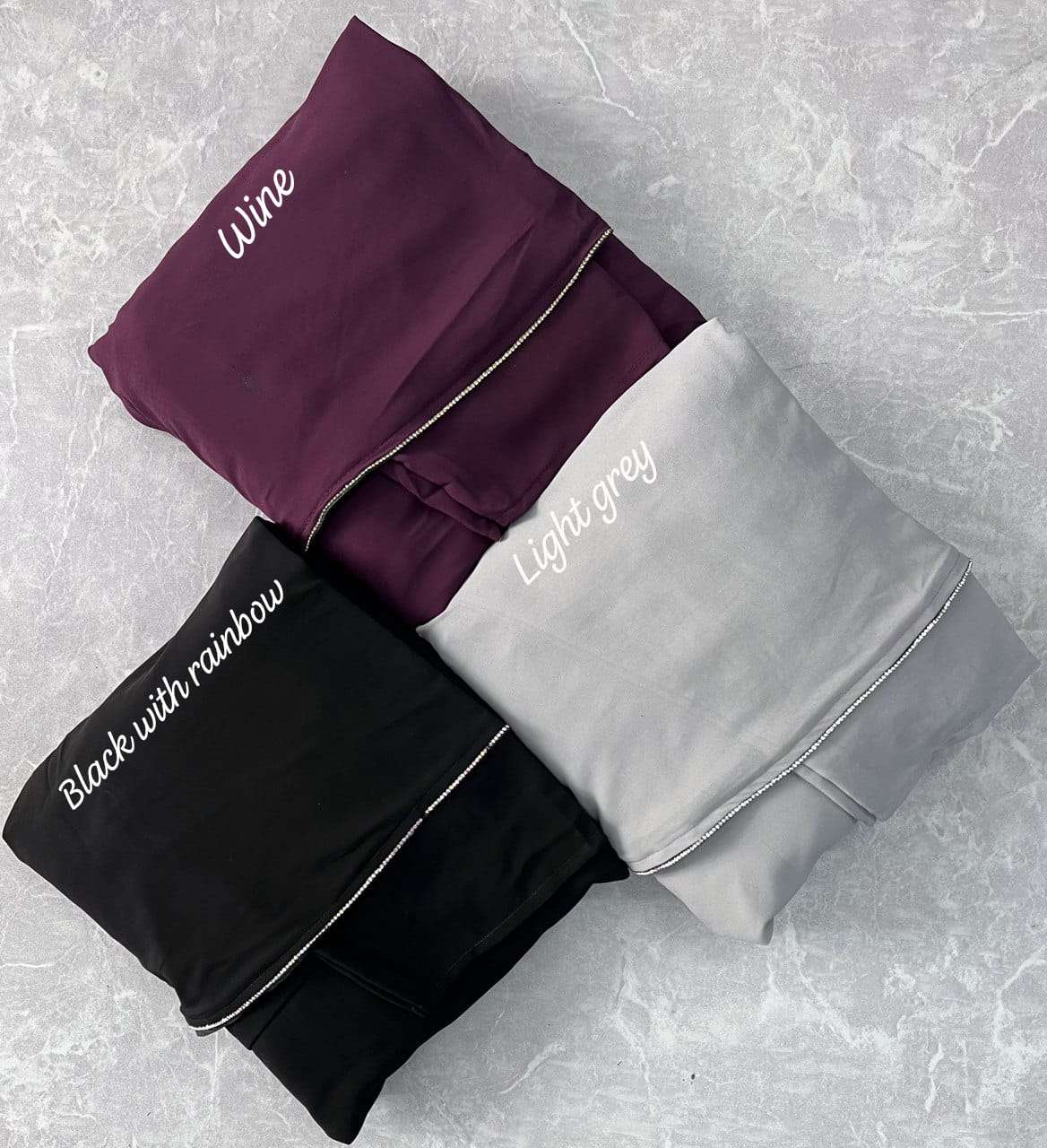 2 frill daimond work abaya. (Front close) Size adjustable belt also available. Material:- jeorget (quality guaranteed) Available size:- 54, 56 Rate:- 1300+$ Ready to Dispatch World wide shipping available 🌏 |