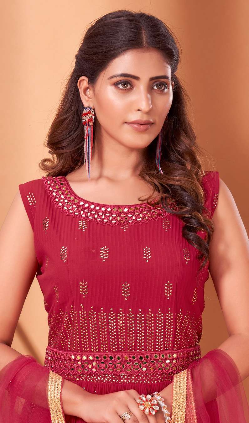 READYMADE GOWN DESIGNE NO G776 FABRIC GEORGETTE CRUSH DETAILS MIRROR WORK WITH MUKESH WORK + MIRROR WORK BELT *SIZE*40 (READY ) 3 COLOURS AVAILABLE RATE 2475 per pcs plus 12%) GSTextra |