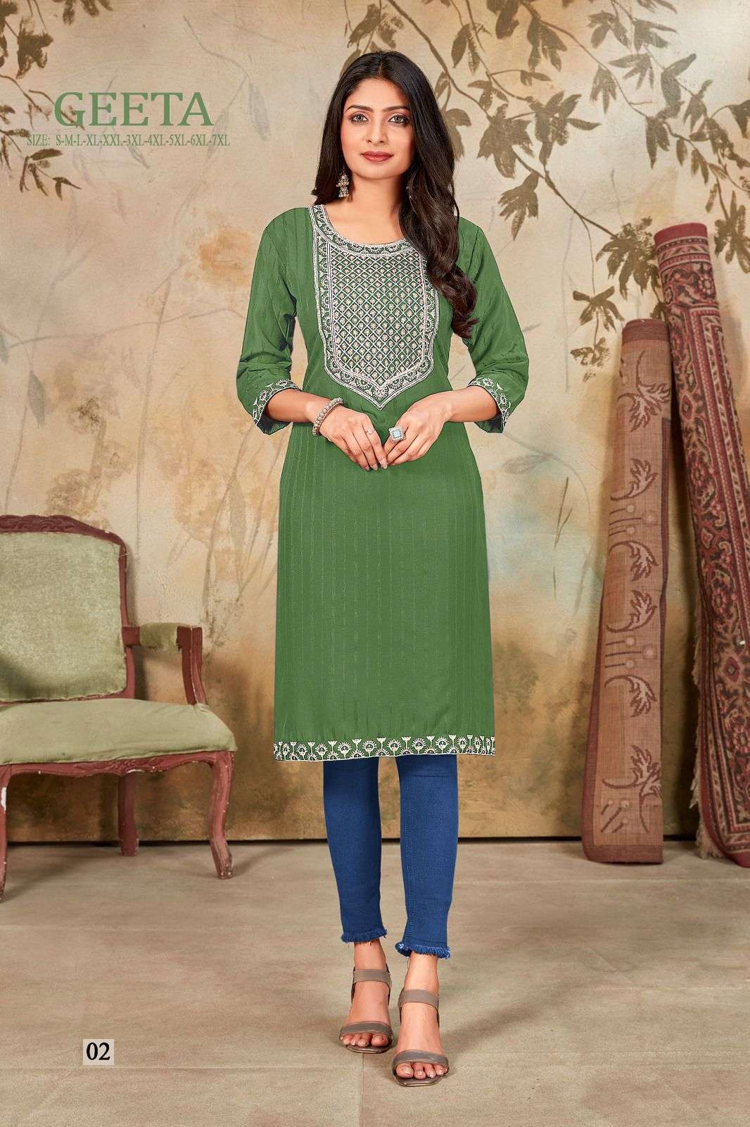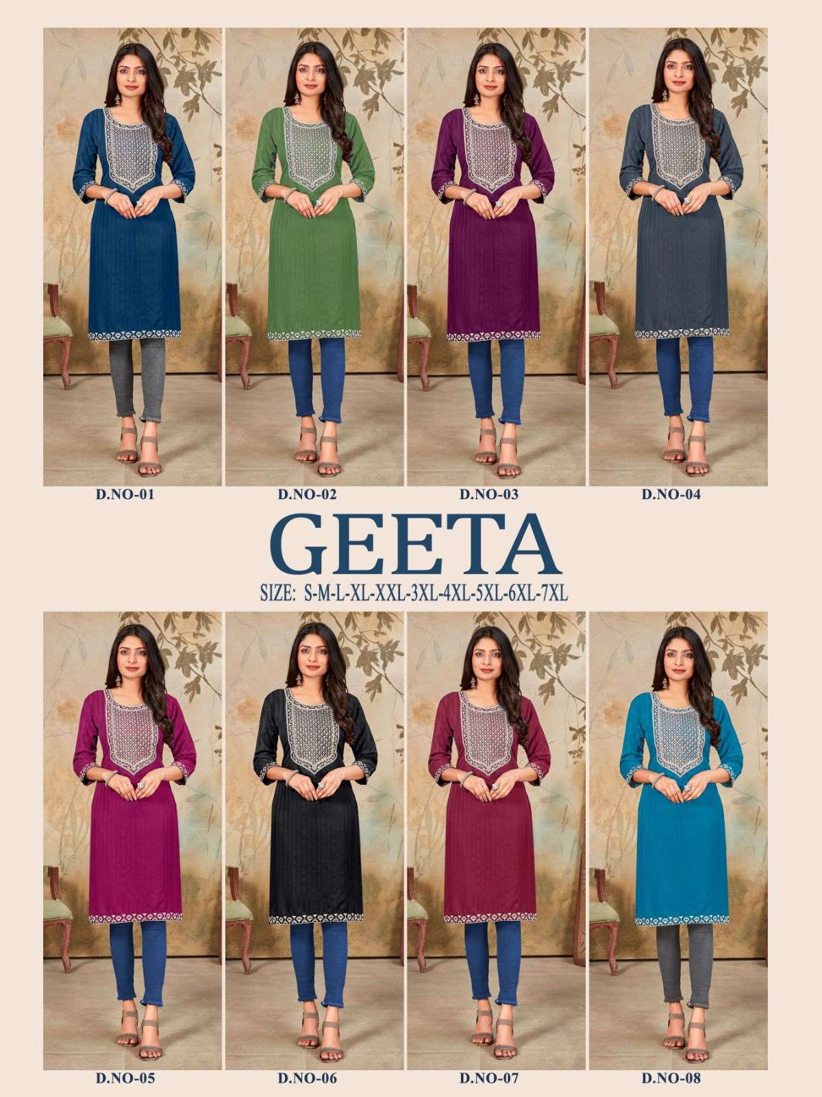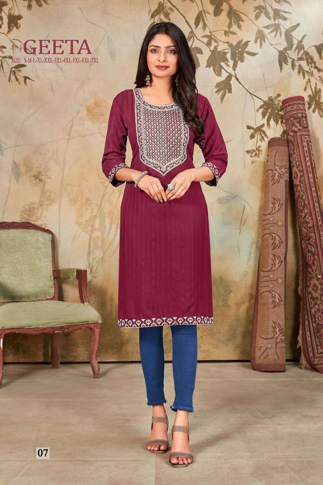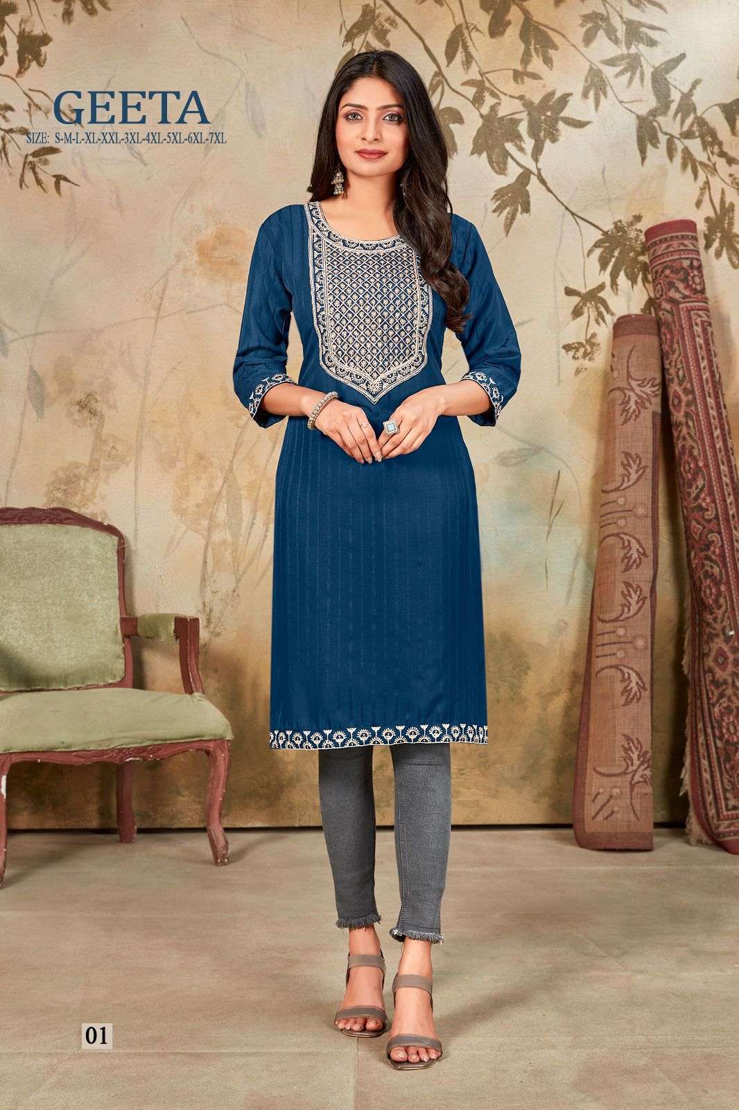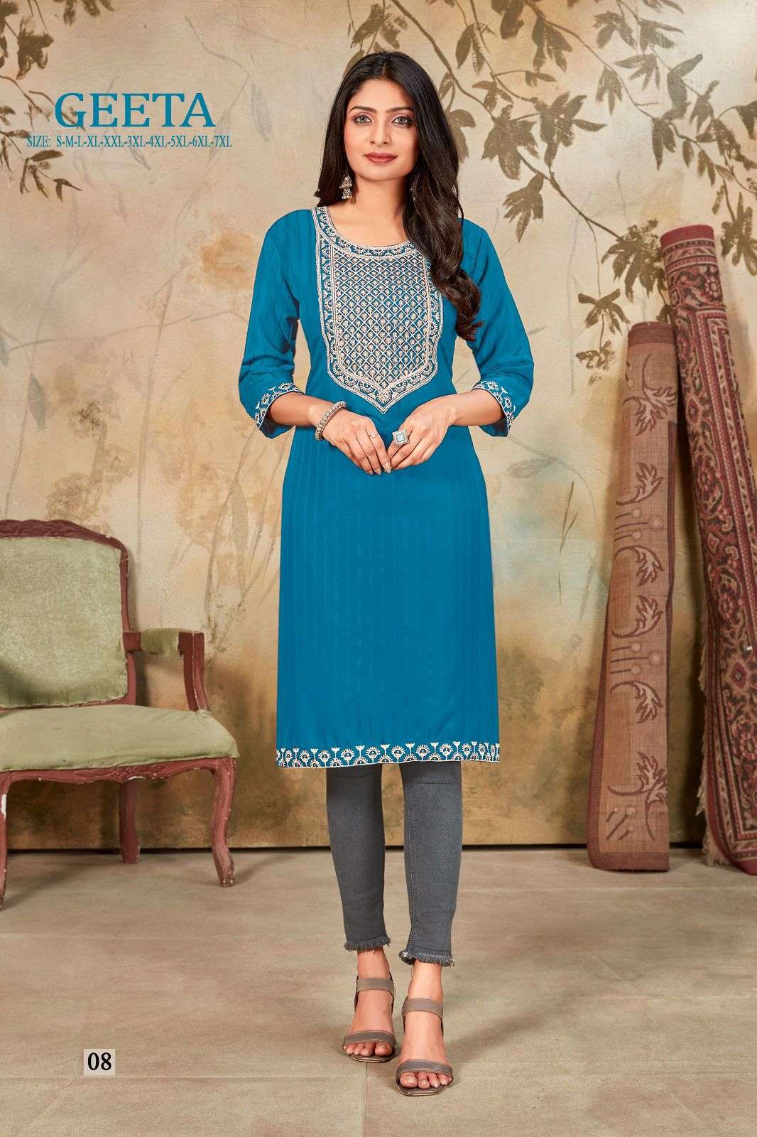 pr geeta daily wear neck work silk fancy stitch kurtis