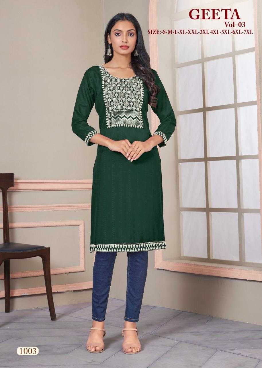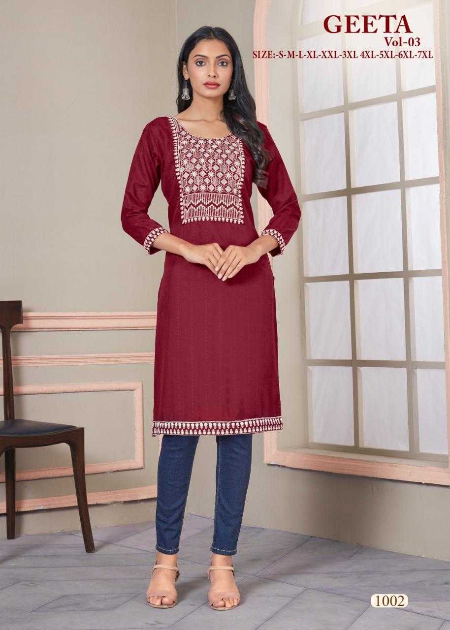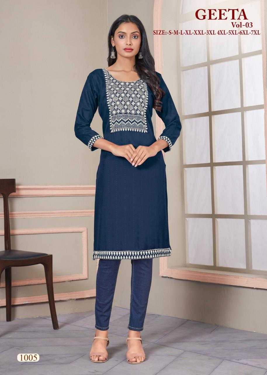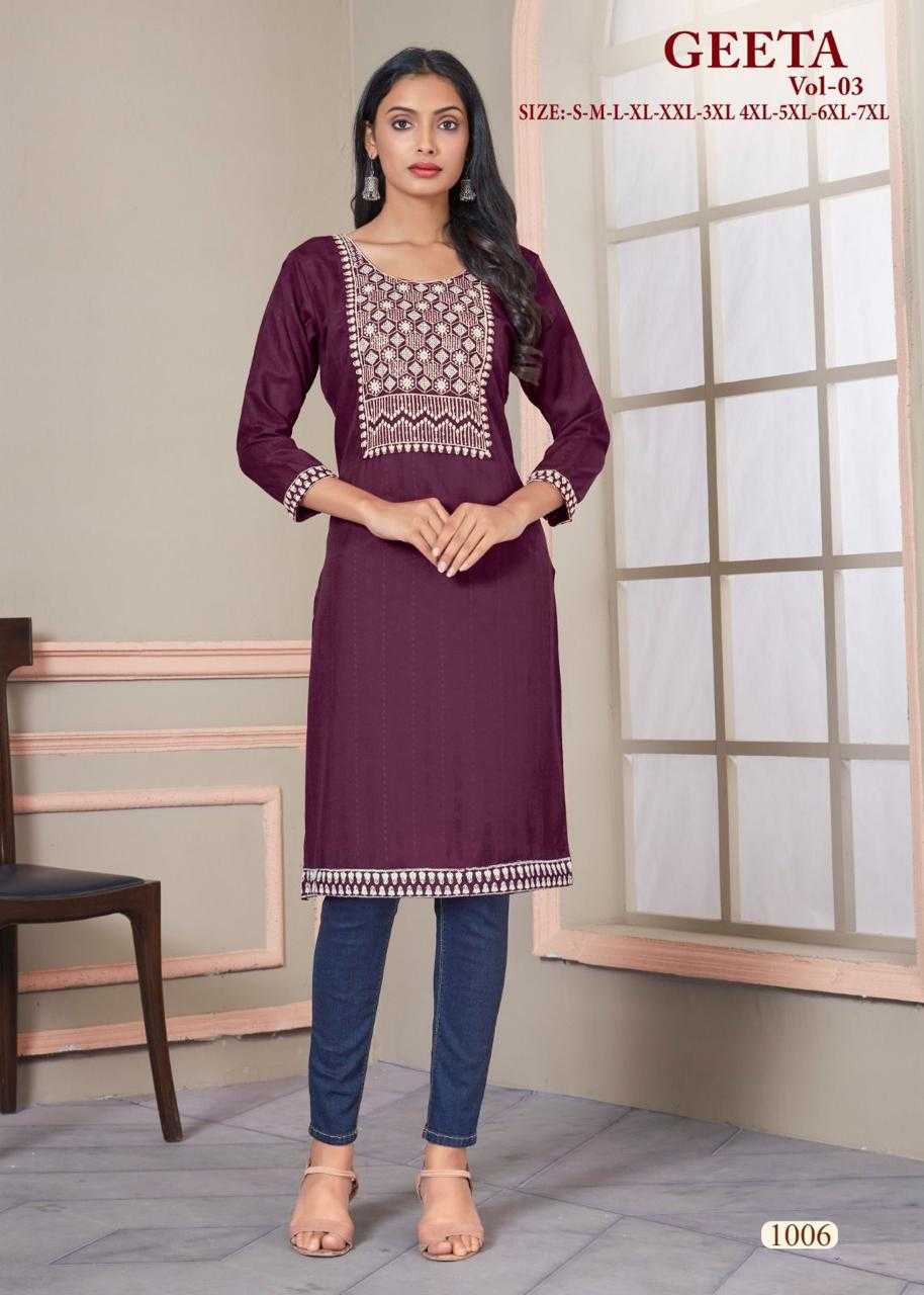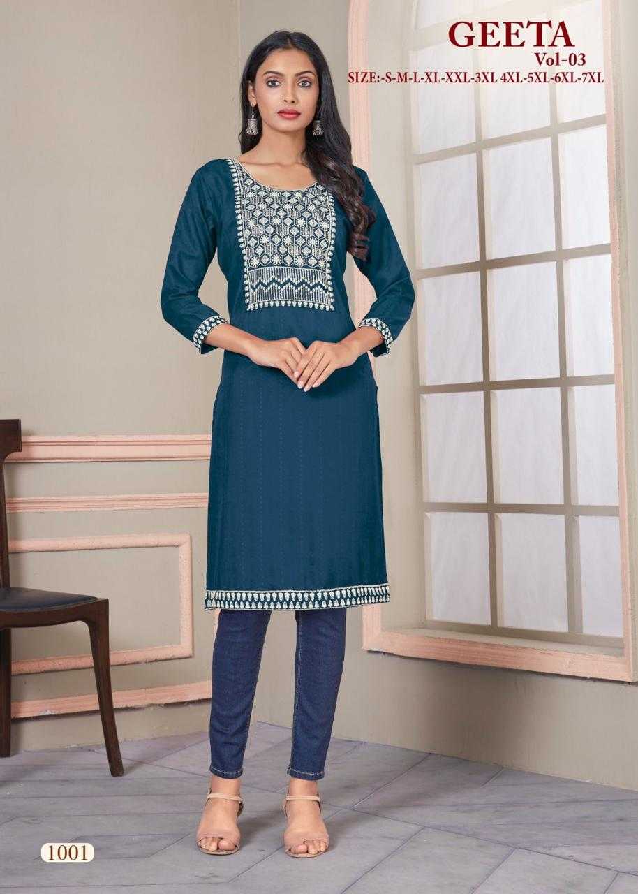 pr geeta vol 3 stitched rayon straight kurti in plus sizes